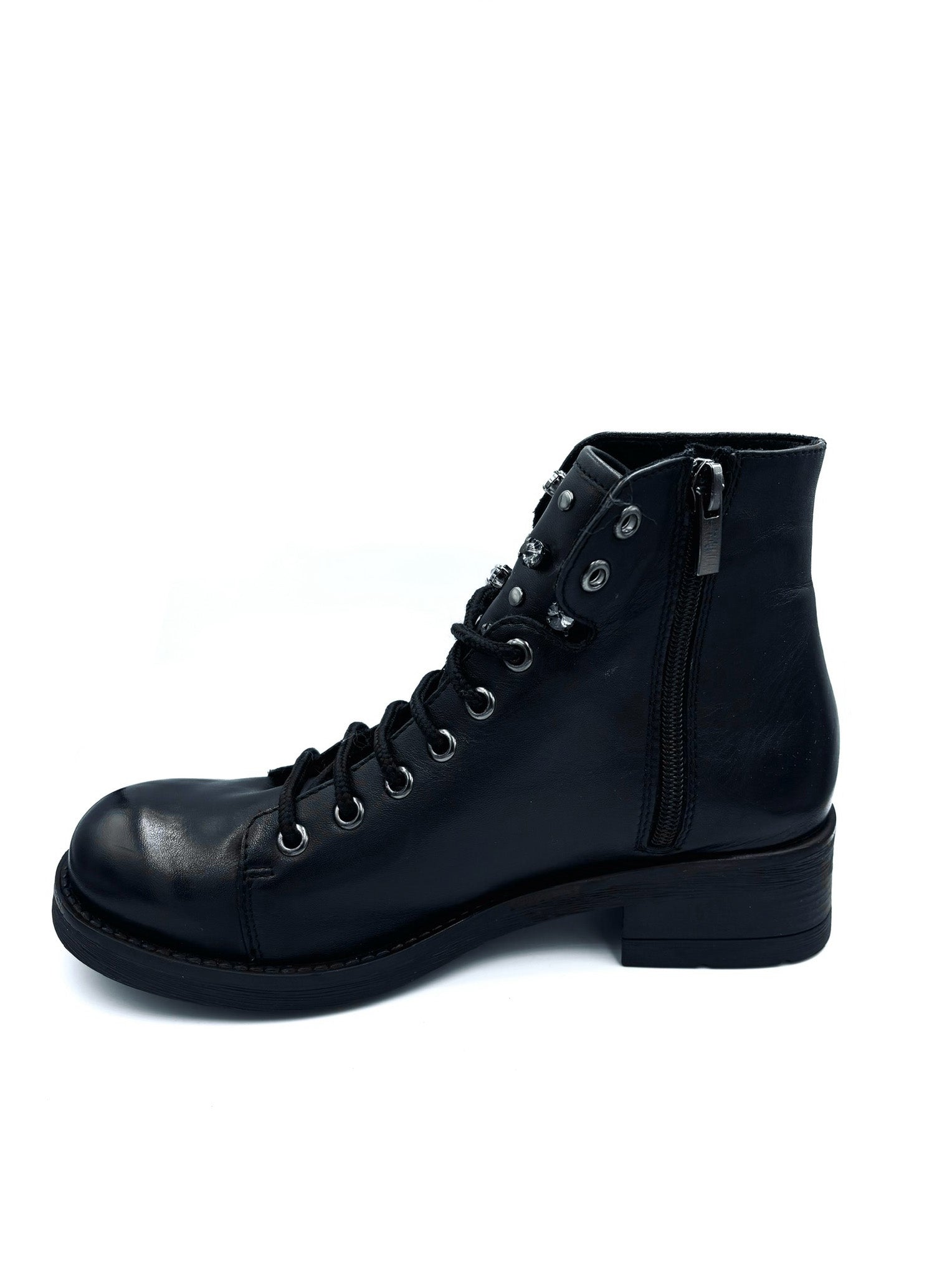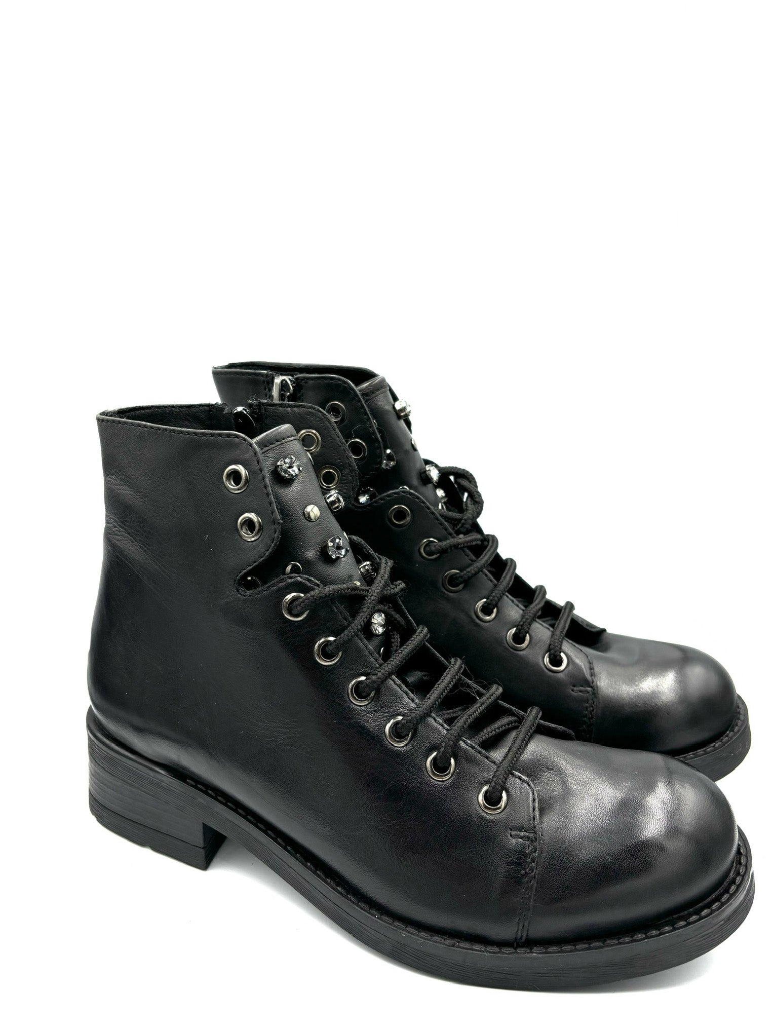 anfibietto prodotto in Italia, completamente in pelle. Suola 4cm in gomma. Impreziosito con gioielli sulla lingua.