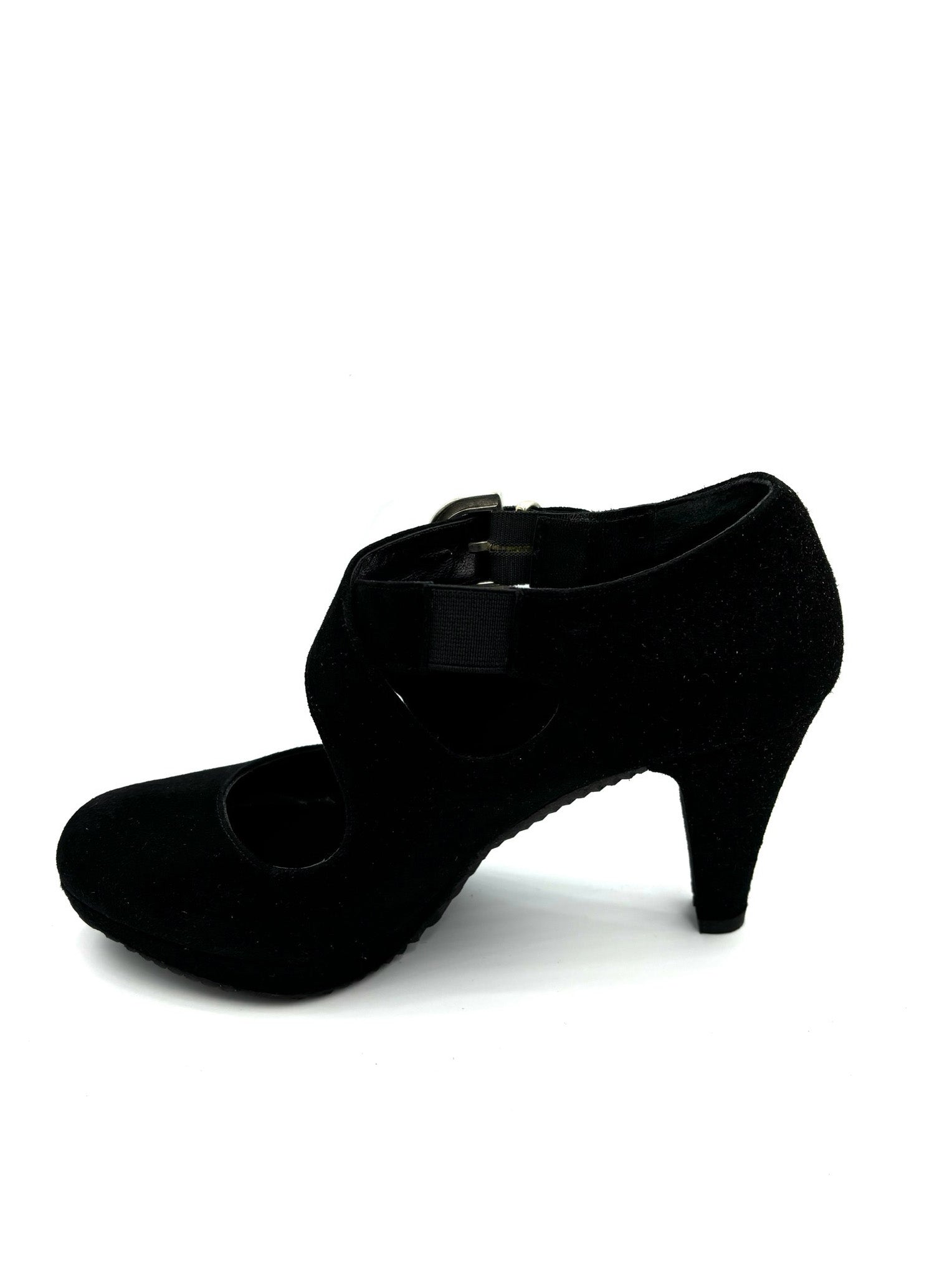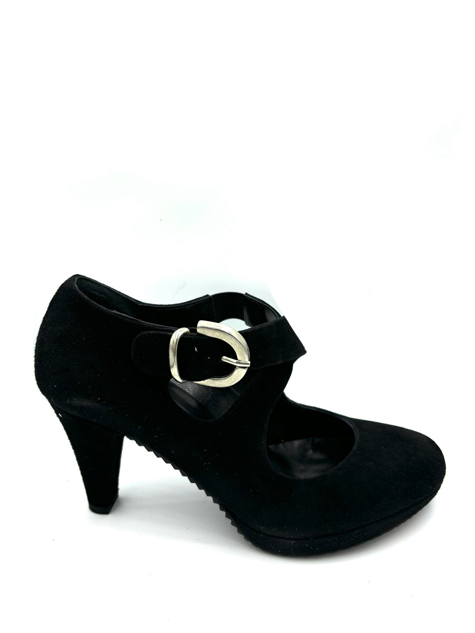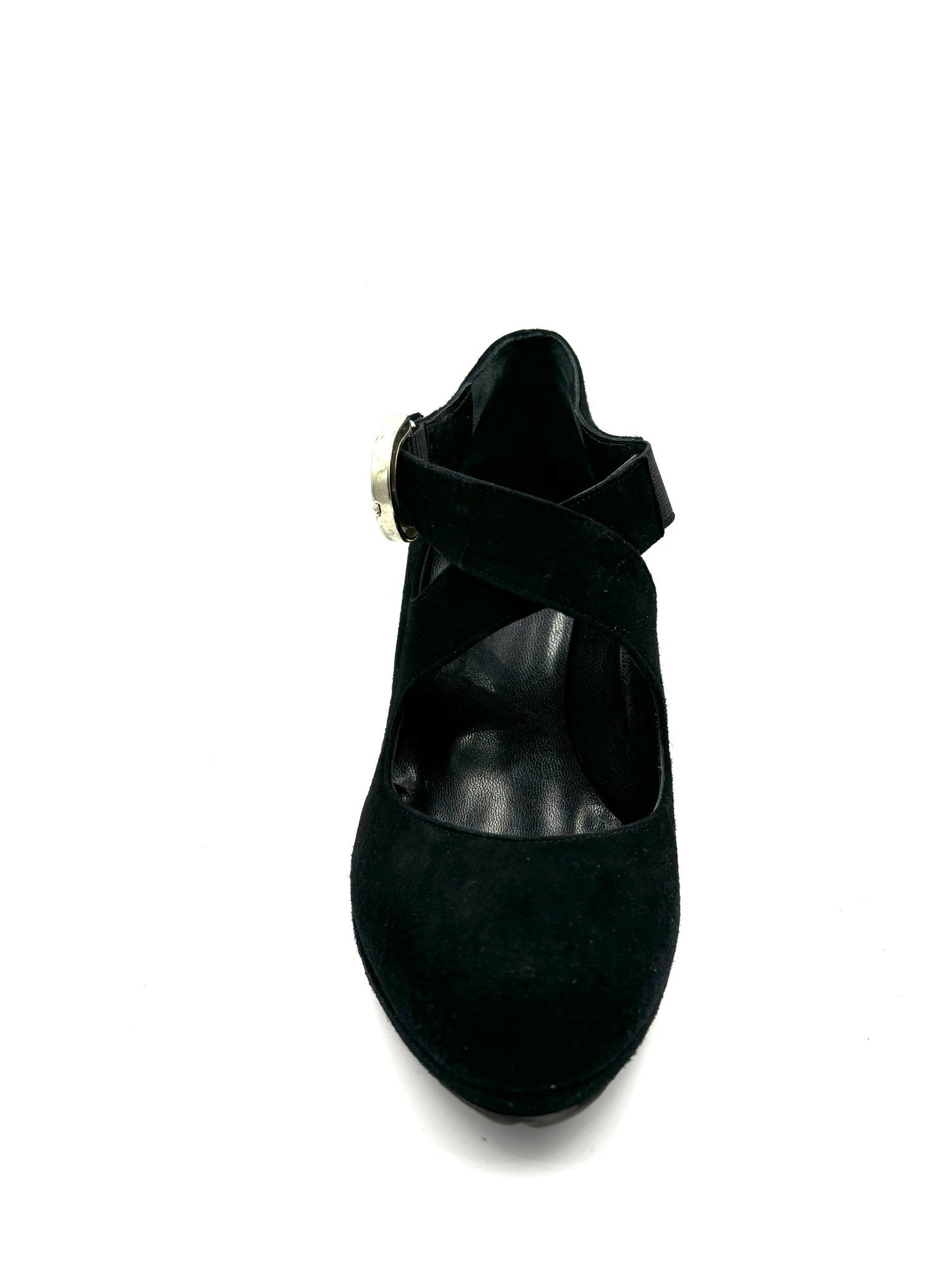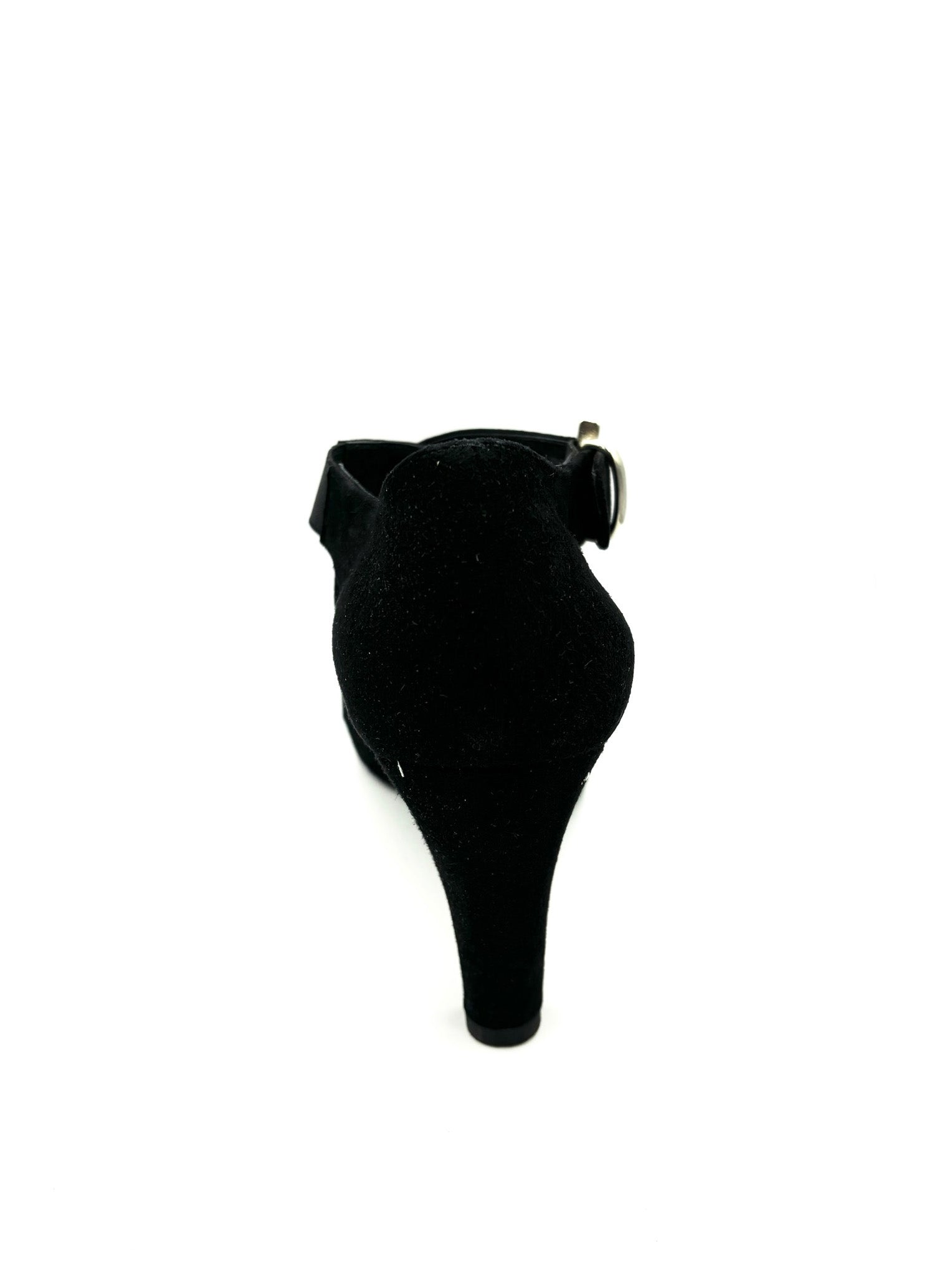 decoltè nero in pelle scamosciata con suola in gomma 7cm. Prodotto italiano.