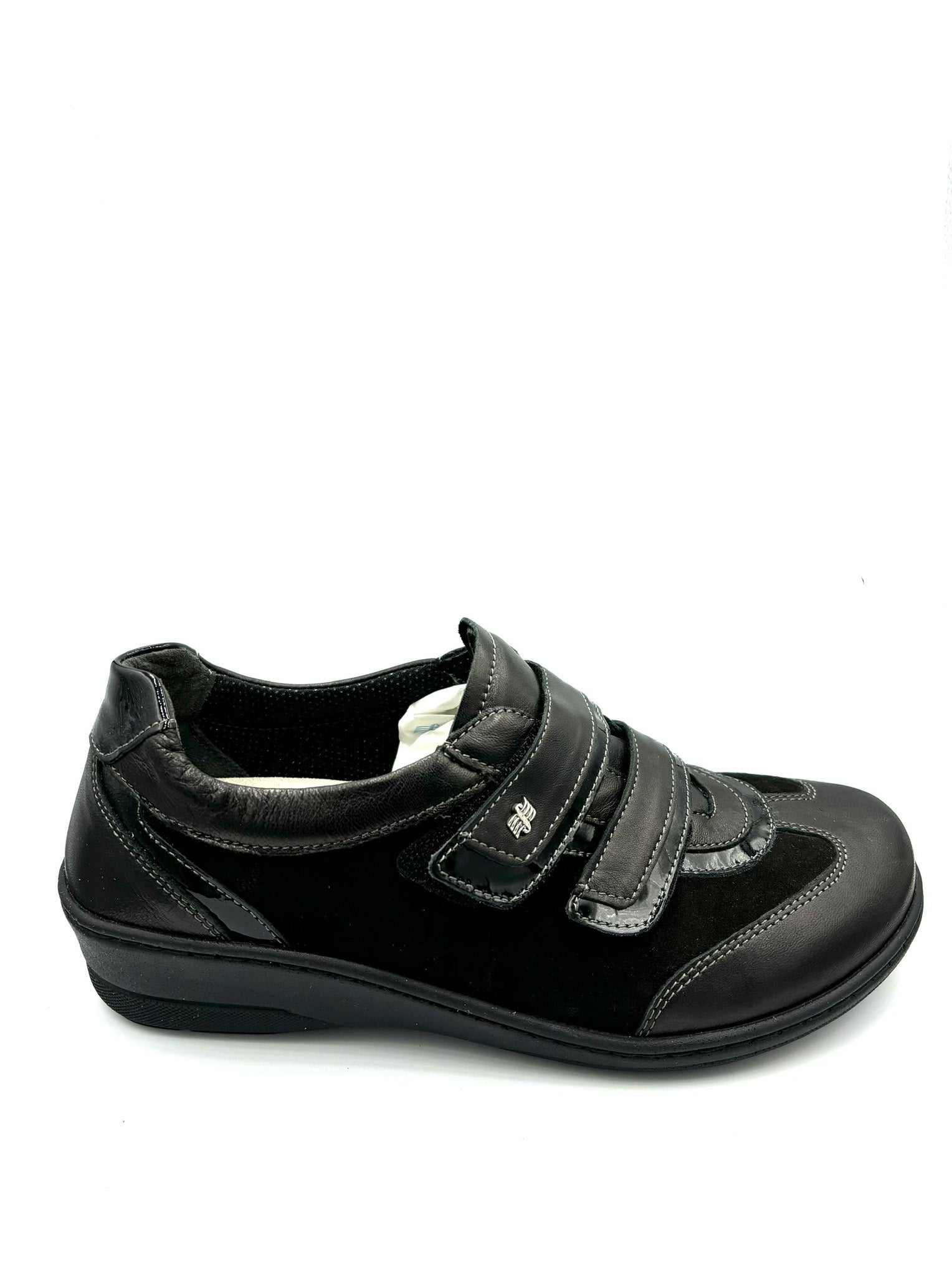 Scarpa totalmente in pelle, prodotto in Italia. Soletta estraibile e suola in gomma isolata. Scarpa con strappi comoda da calzare.