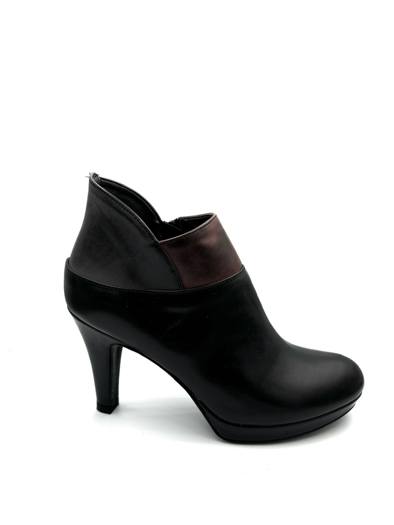 scarpa in pelle liscia nero, grigio e bordeaux. Prodotto in pelle e suola in gomma. Suola 9cm.