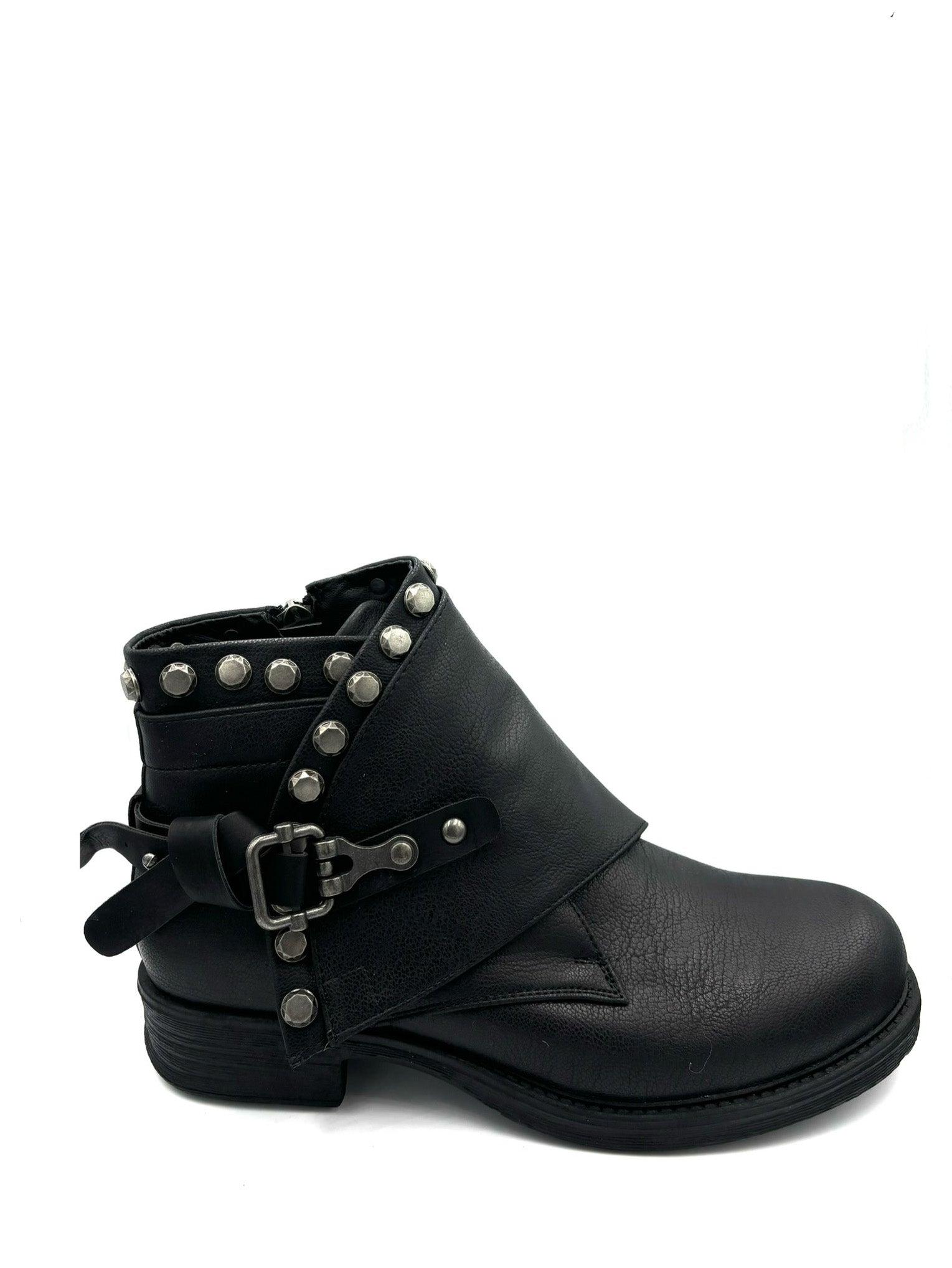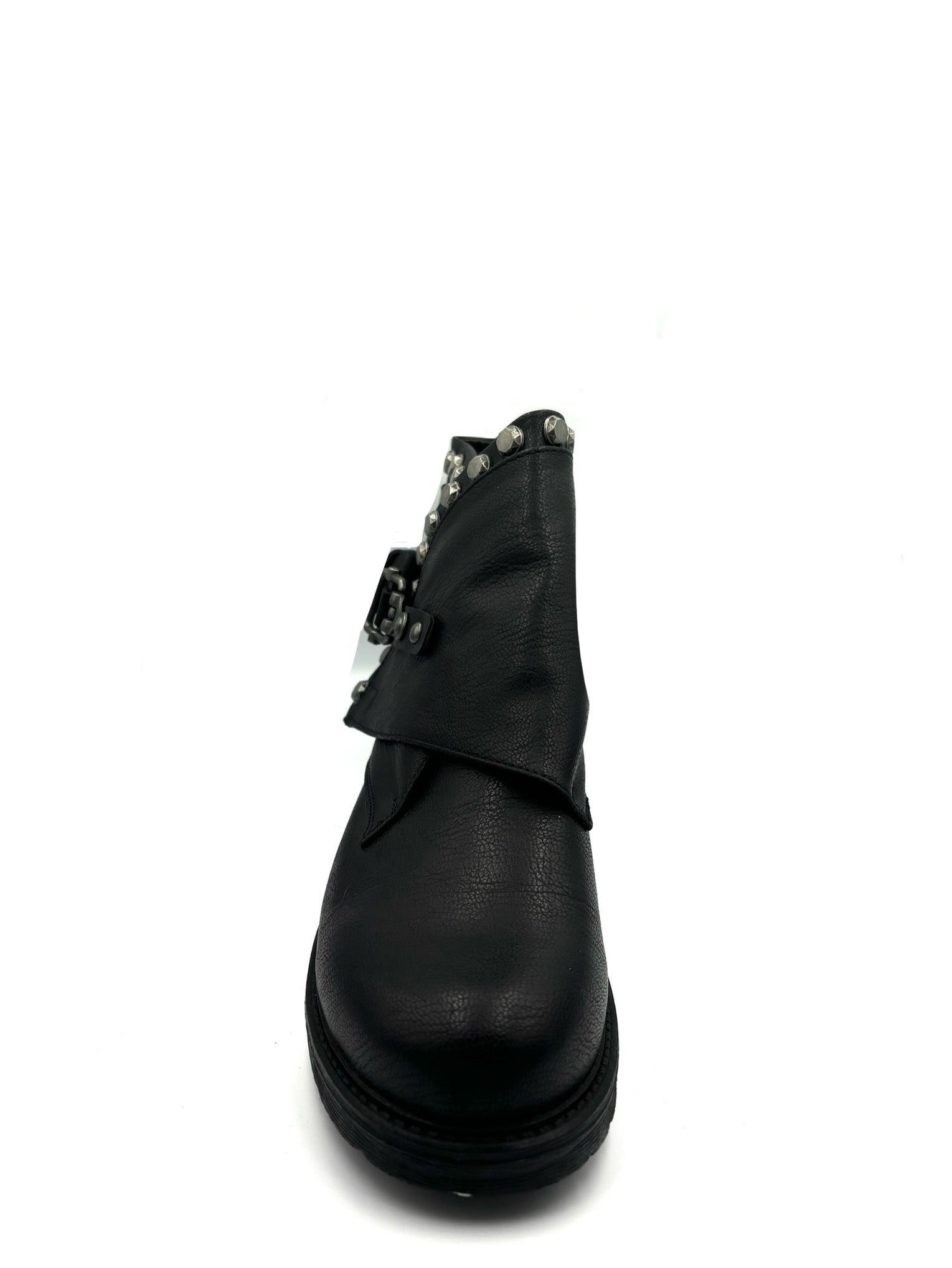 stivaletto color antracite, con borchiette che danno luce alla scarpa e la patta che la va ad impreziosire. Molto morbide e pratiche grazie alla cerniera interna. Altezza della suola 3cm