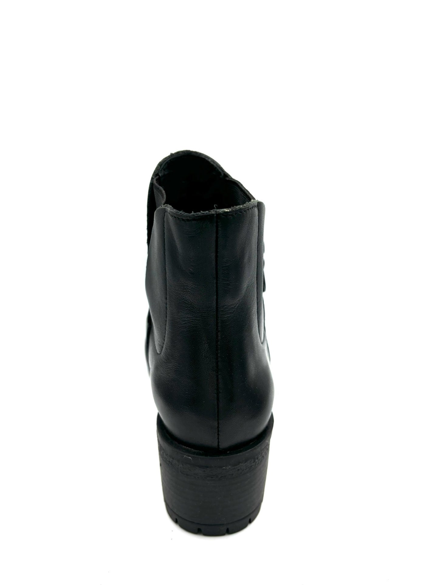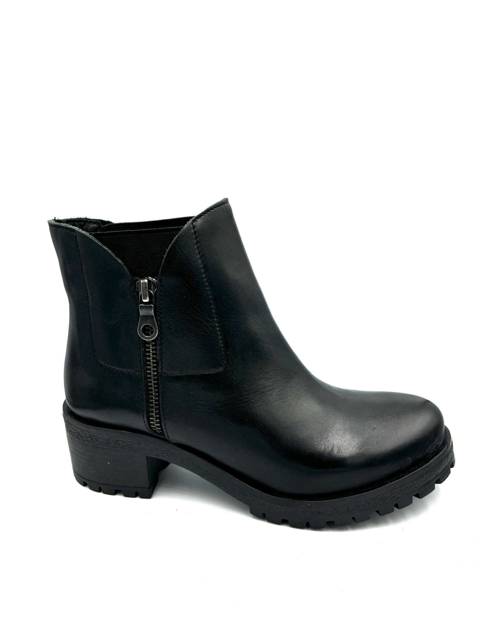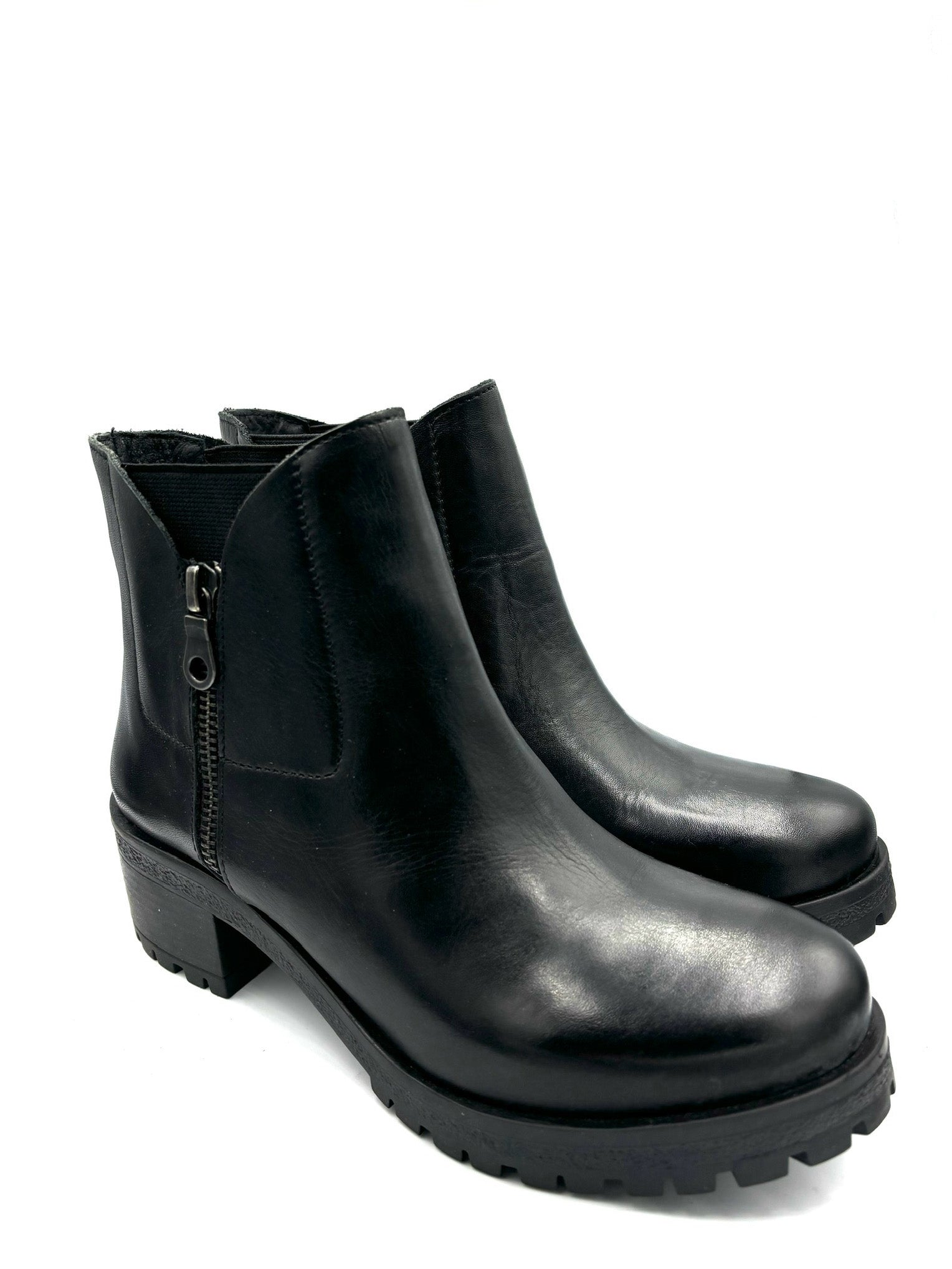 stivaletto completamente in pelle e suola in gomma anti rumore. Elastico interno ed esterno per facilitare la calzata, cerniera prettamente estetica. Tacco 5cm