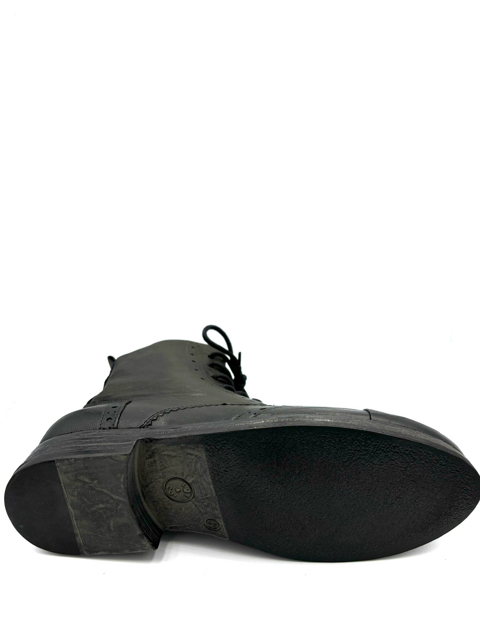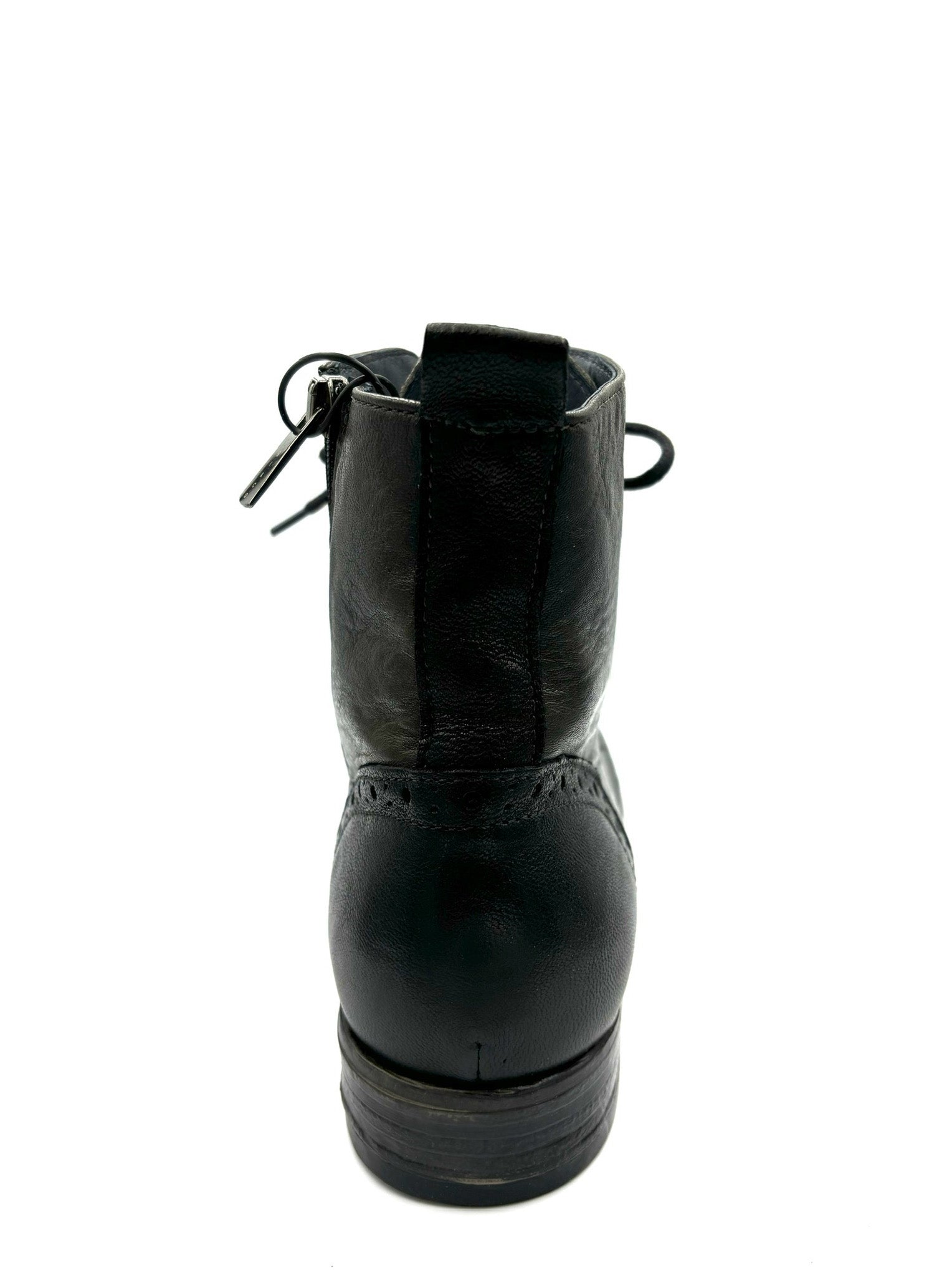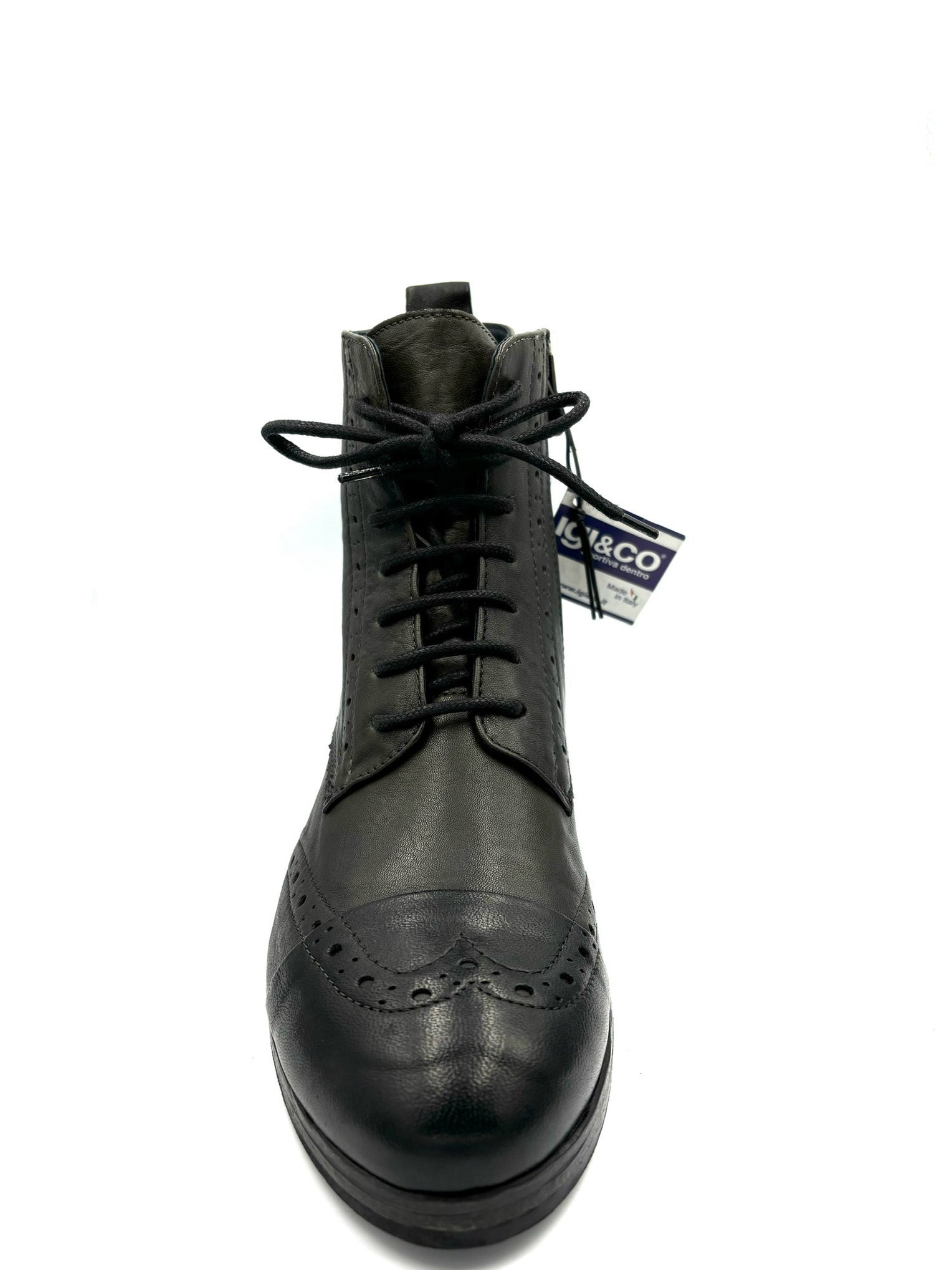 anfibio stringato con punta a coda di rondine. Comoda cerniera interna. Prodotto italiano completamente in pelle e suola in gomma 3cm.
