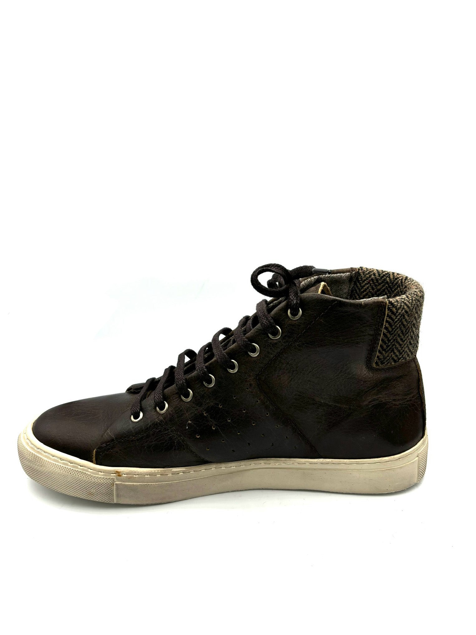 scarpa stringata alta. In pelle, foderato all'interno con lana cotta. Suola in gomma 2cm.