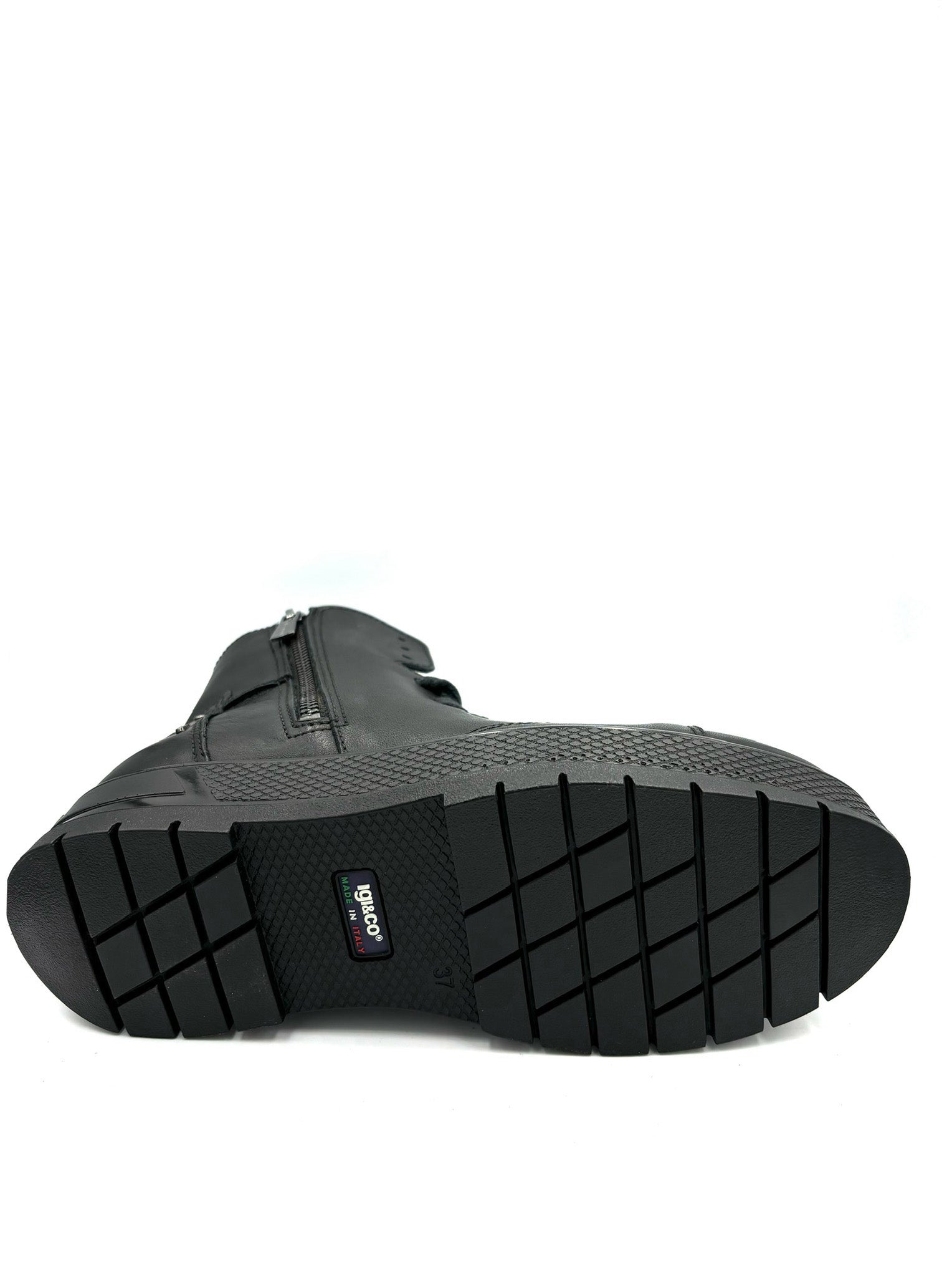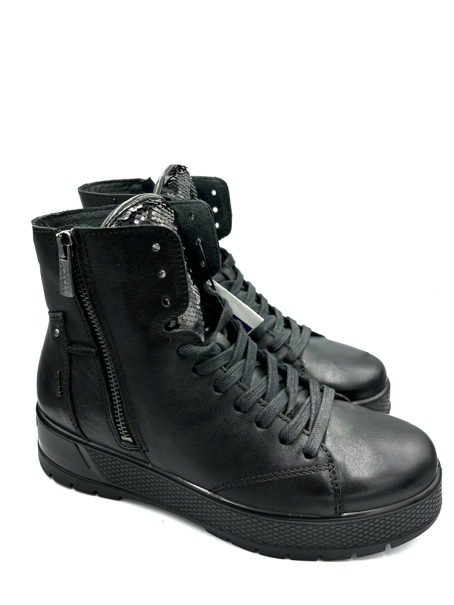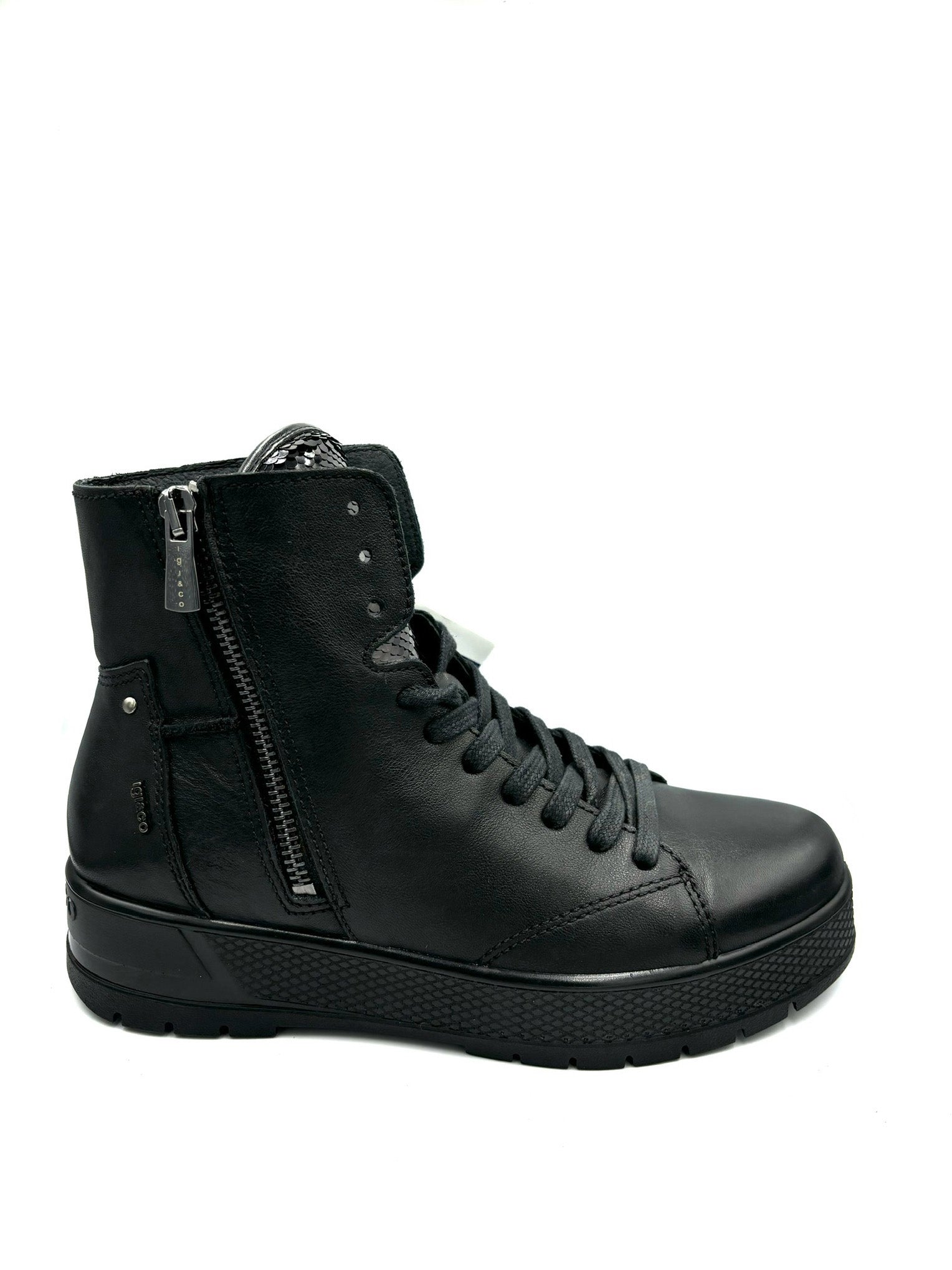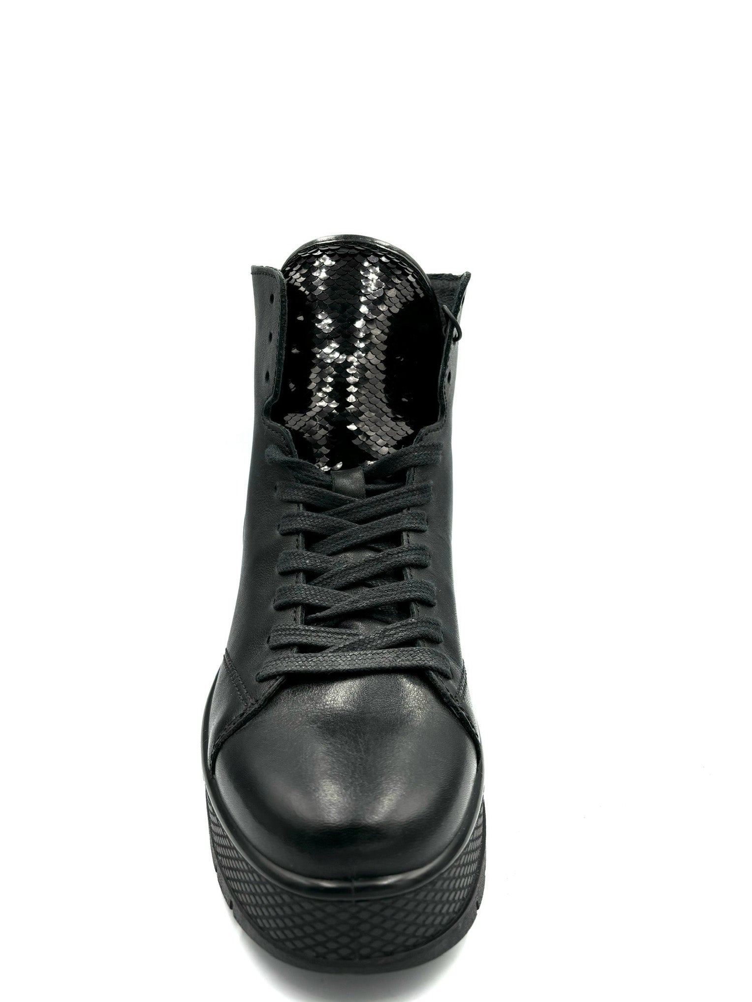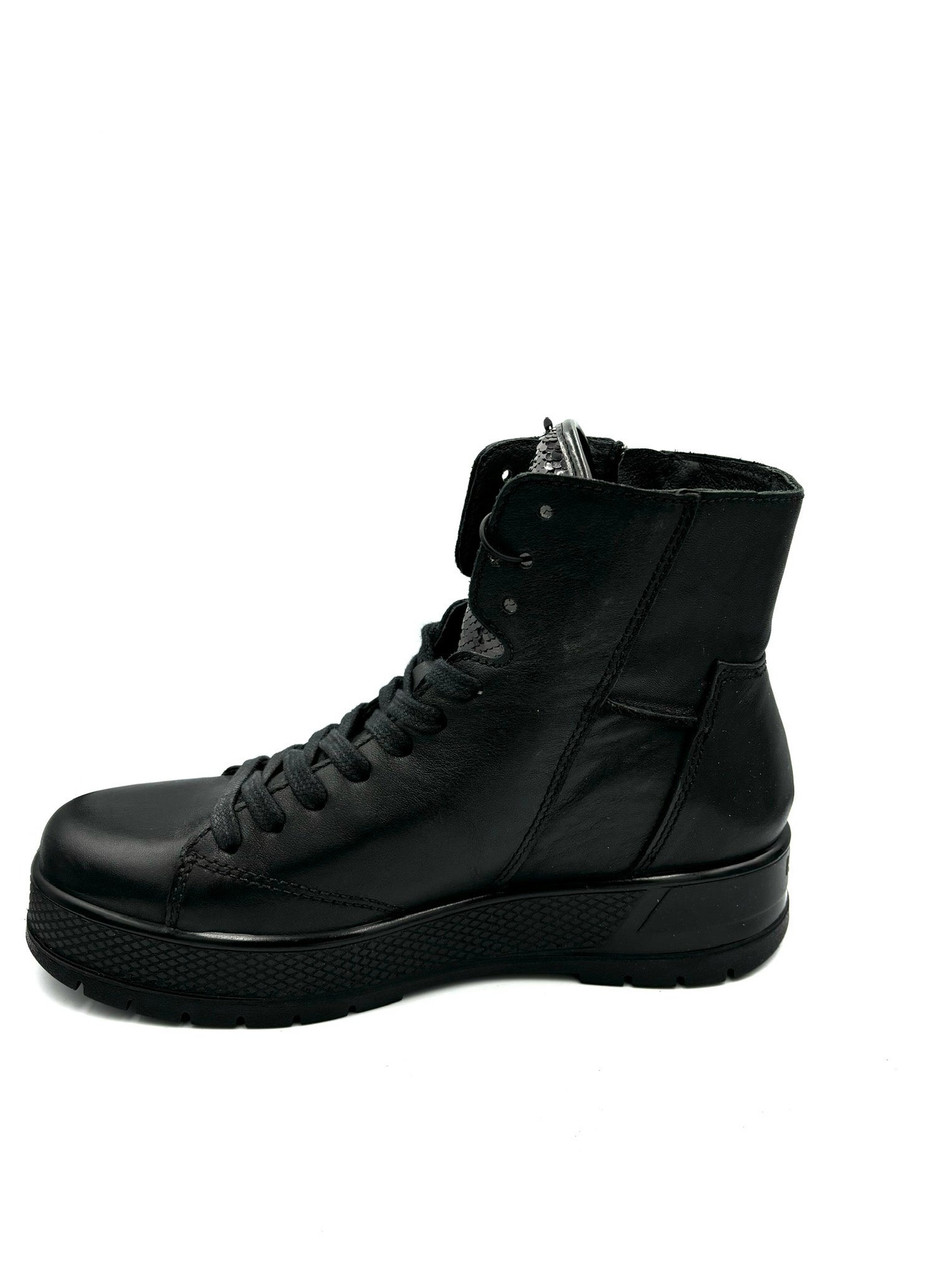 scarpa alta stringata ma con comoda cerniera interna. Prodotto in Italia, completamente in pelle e suola in gomma di 3,5cm
