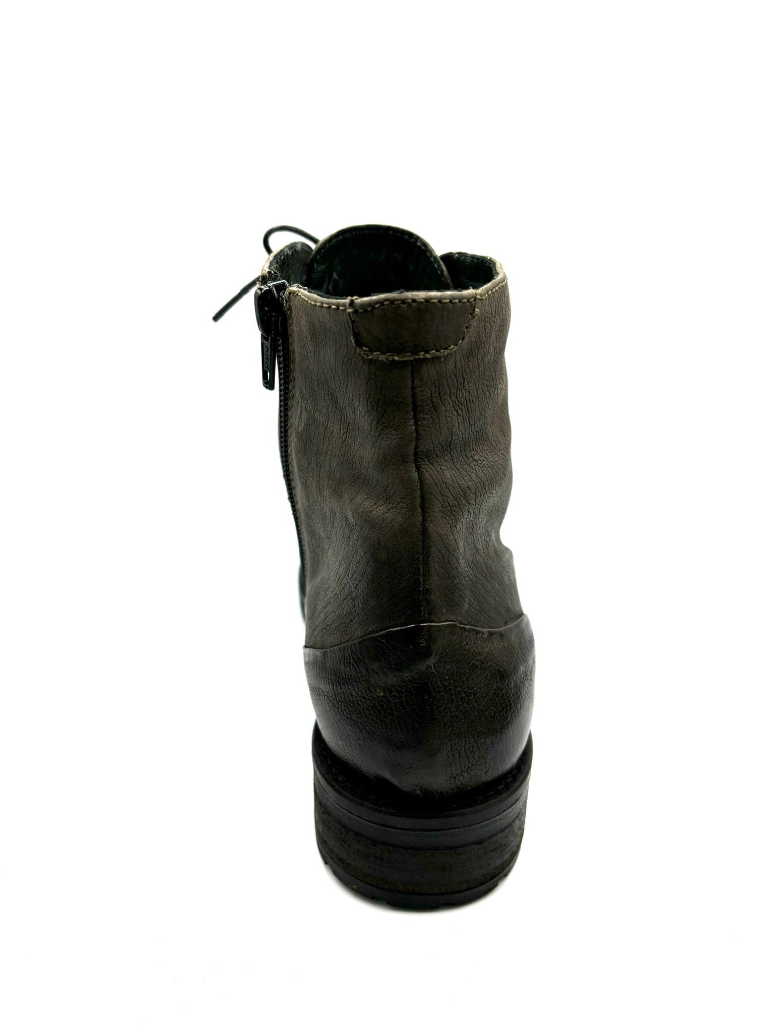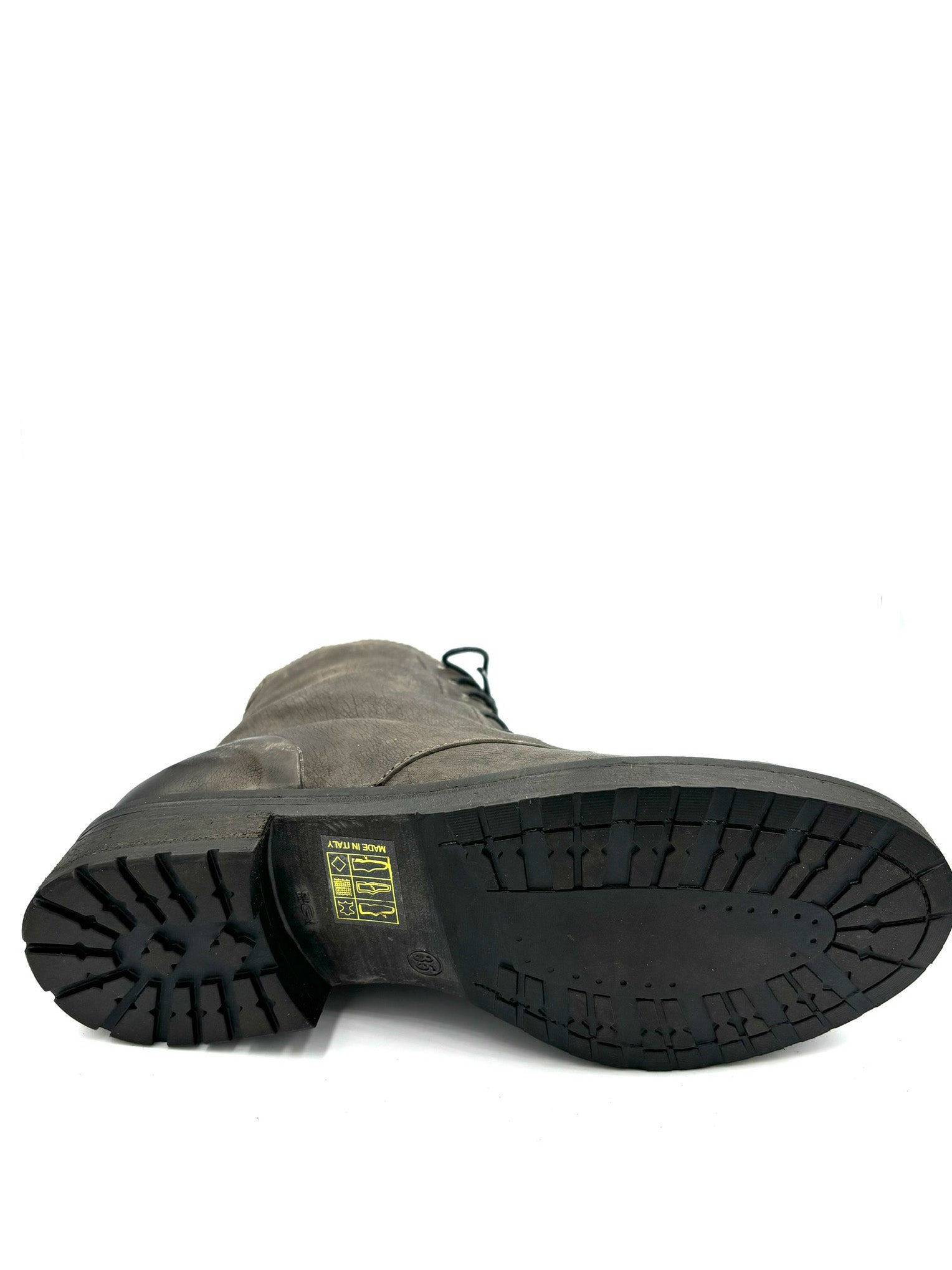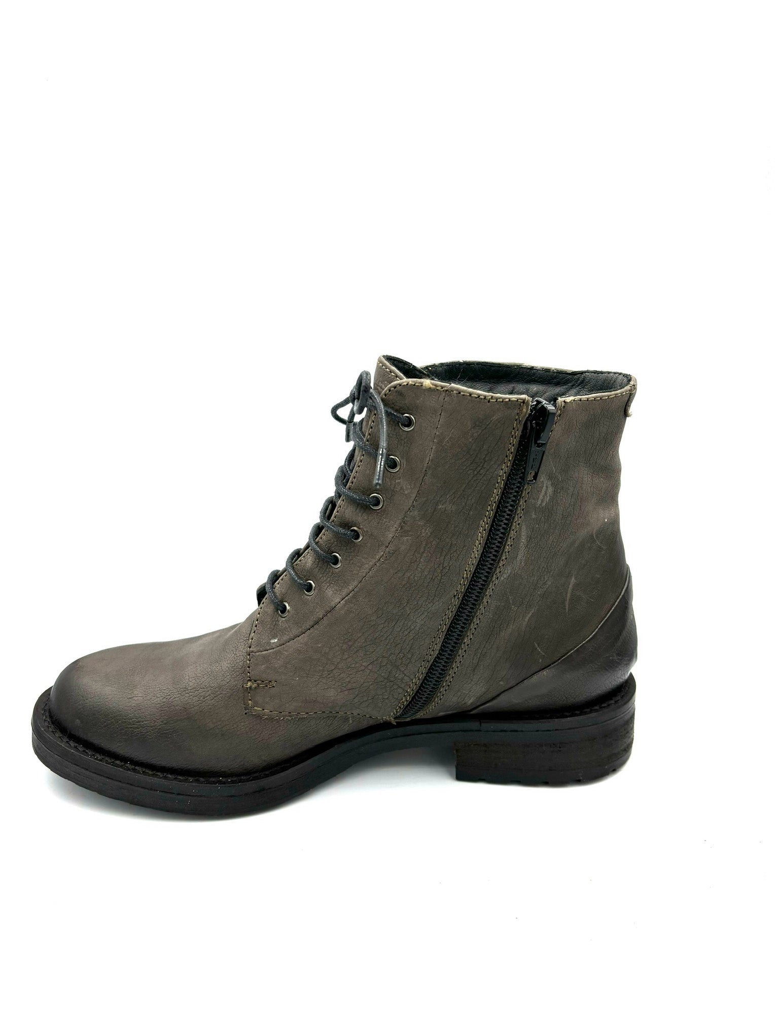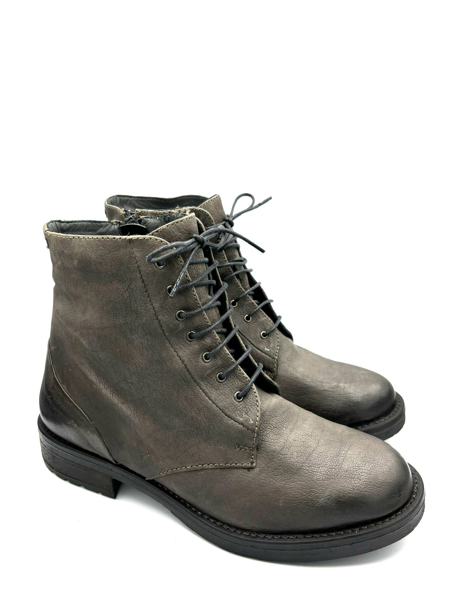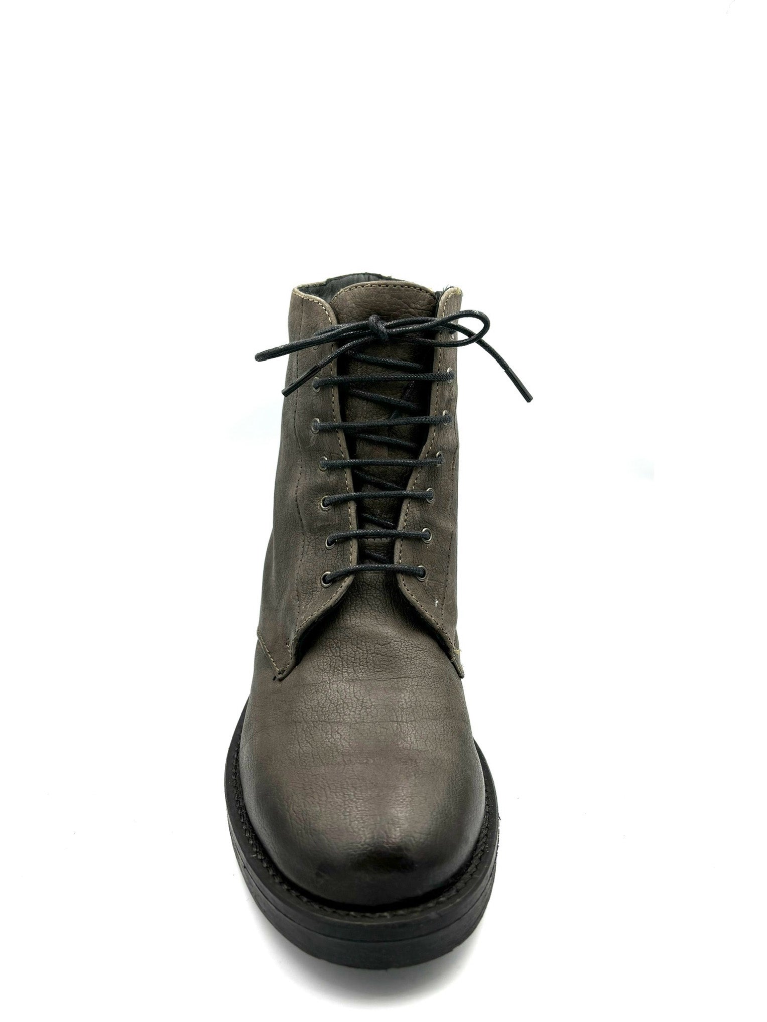 anfibietto stringato ma con comoda cerniera interna. Color testa di moro. Prodotto italiano, completamente in pelle e suola in gomma anti rumore 3cm.