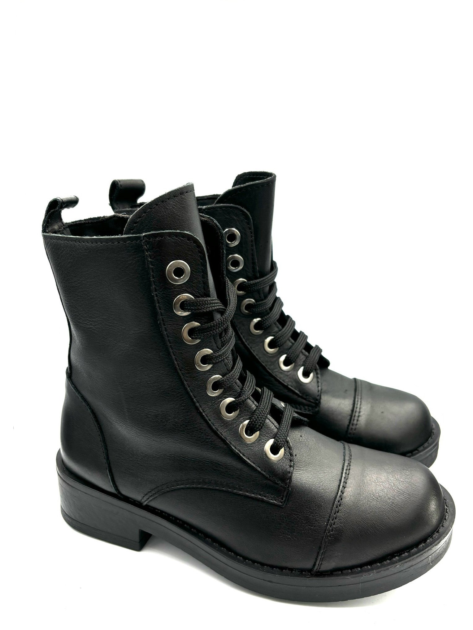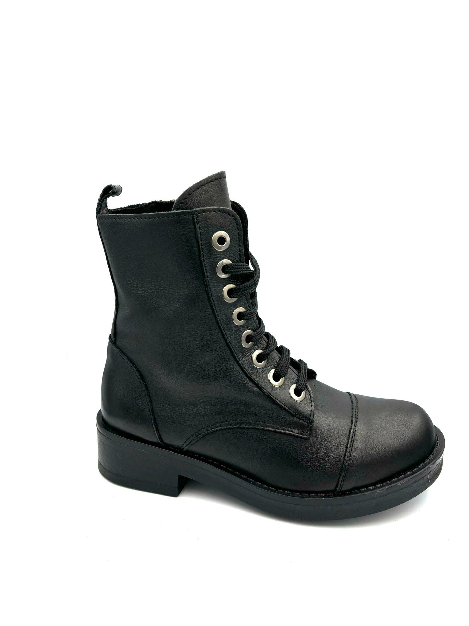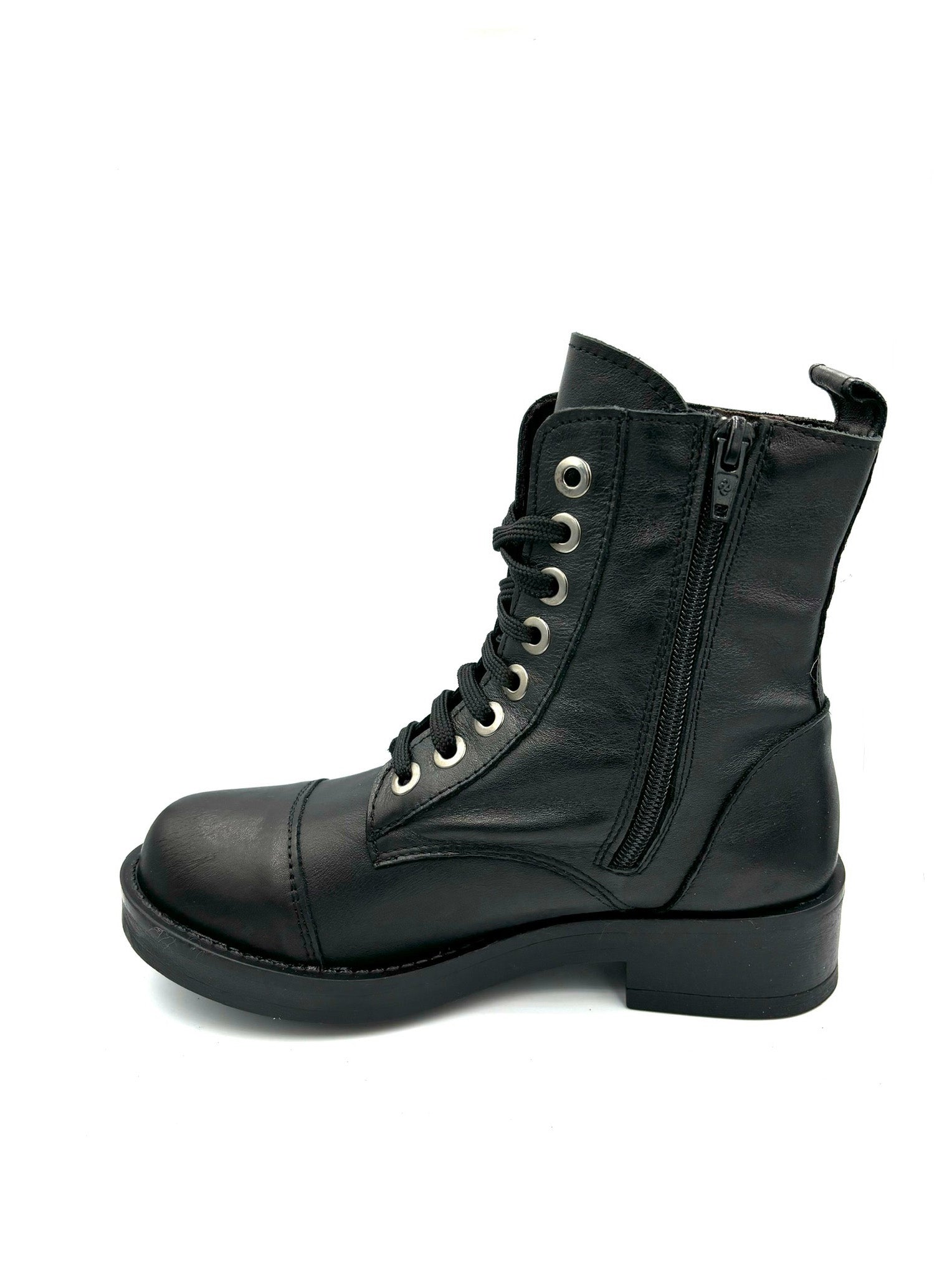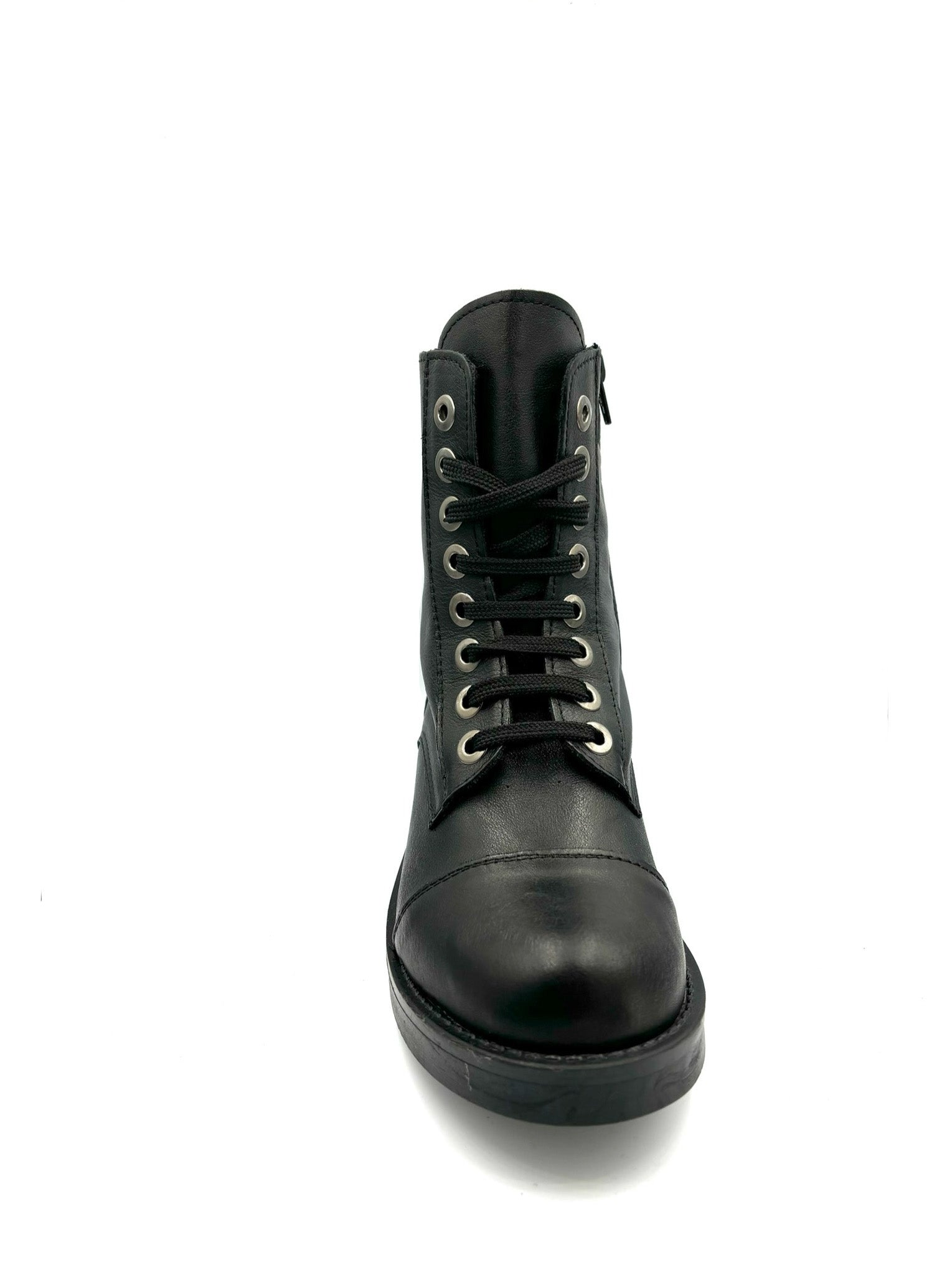 anfibio stringato ma con cerniera interna. Prodotto italiano. Totalmente in pelle e suola in gomma 4cm.