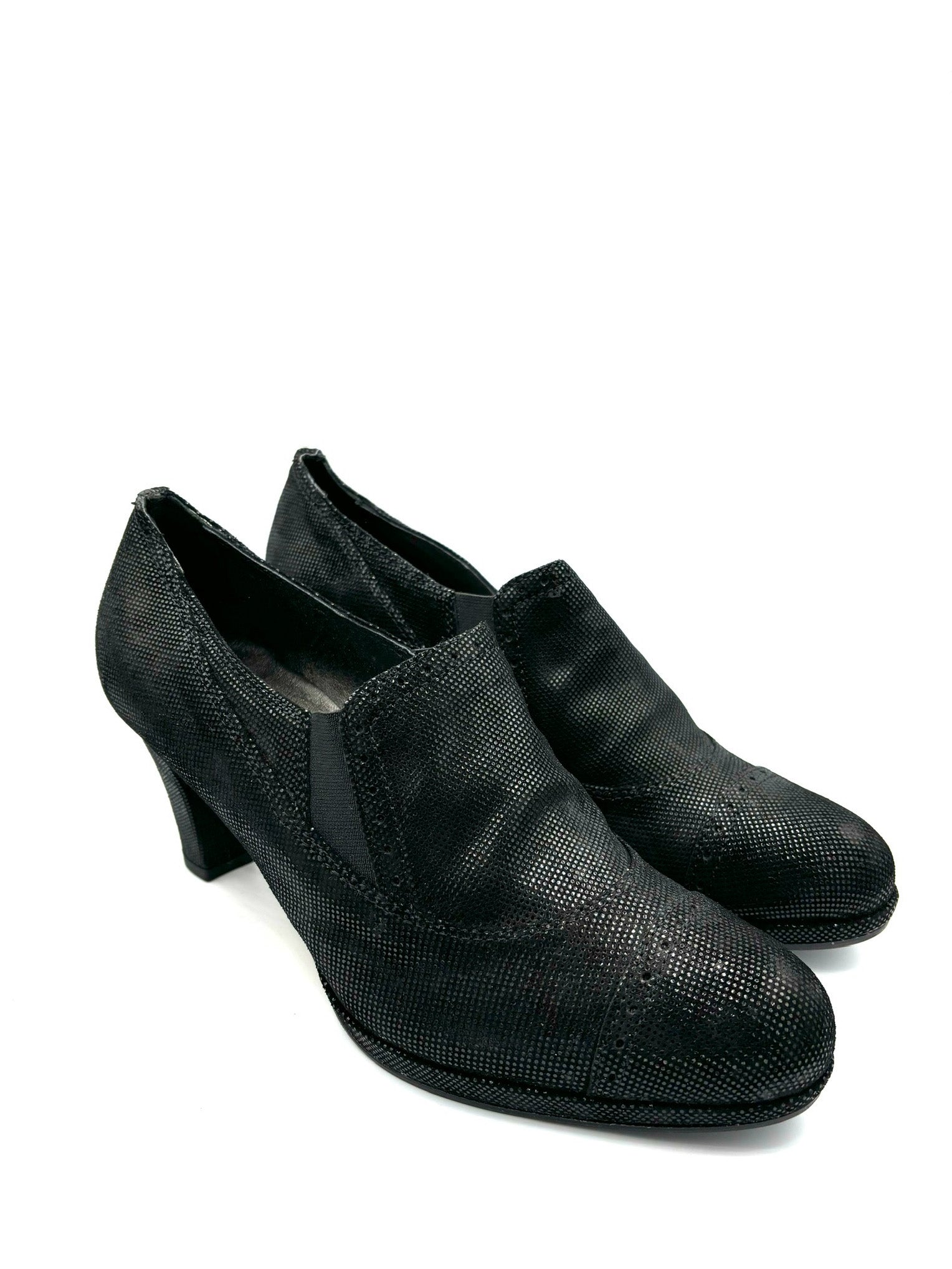 scarpa con tacco 7cm. Prodotto italiano totalmente in pelle luminosa con elastici per agevolare la calzata. Suola in gomma