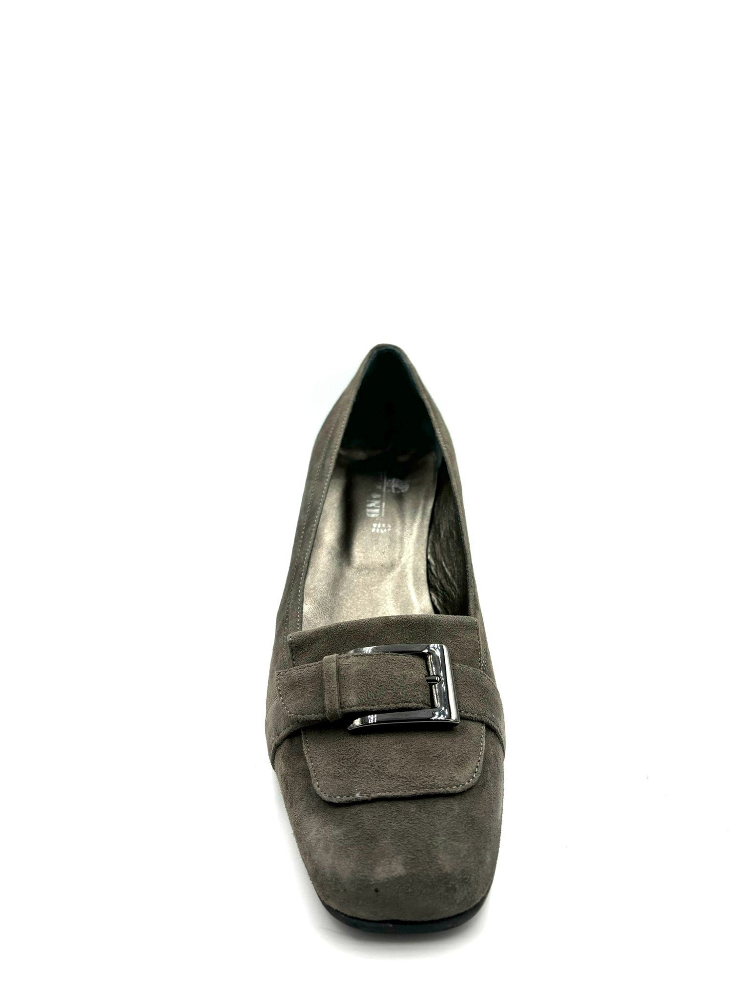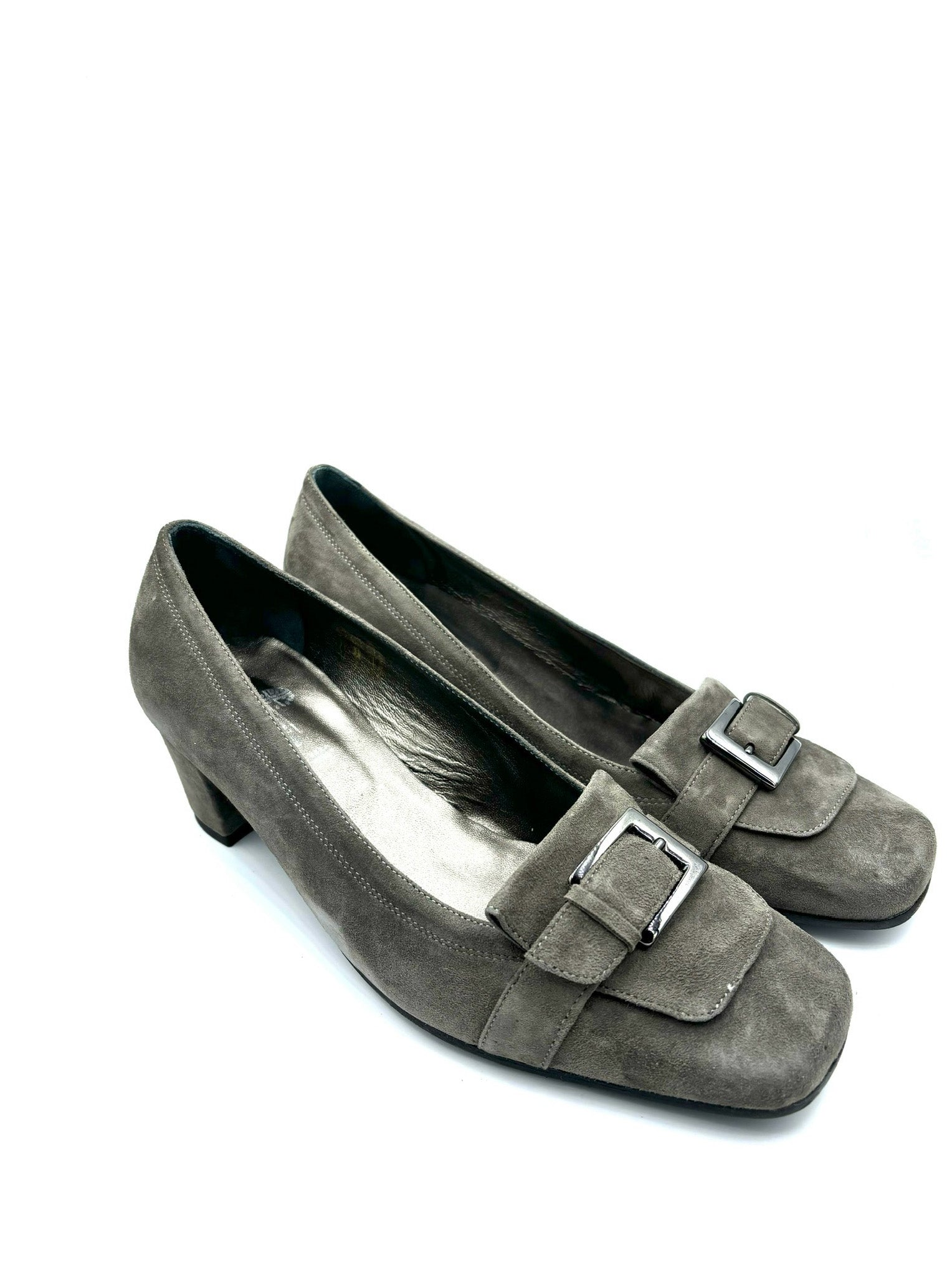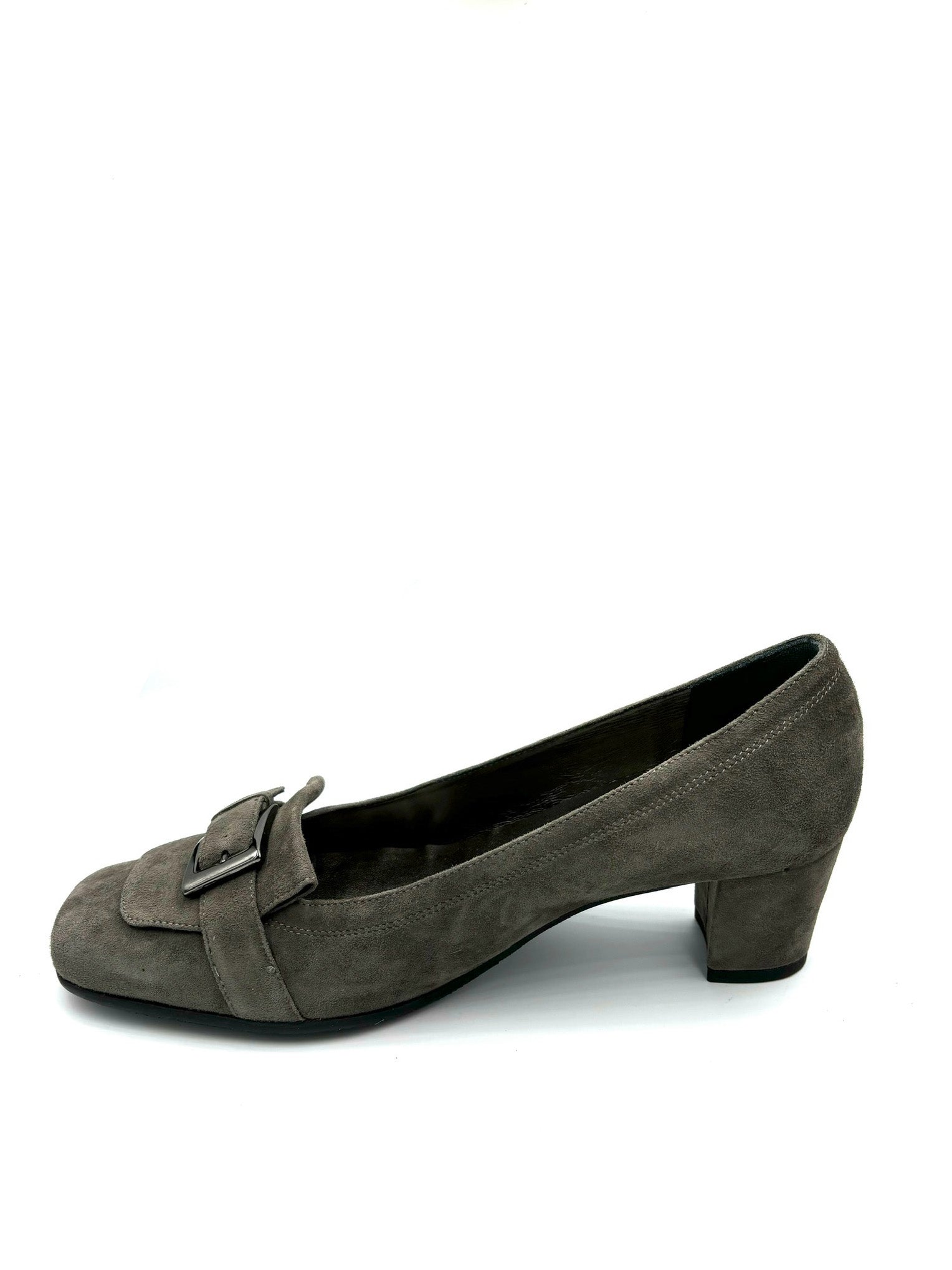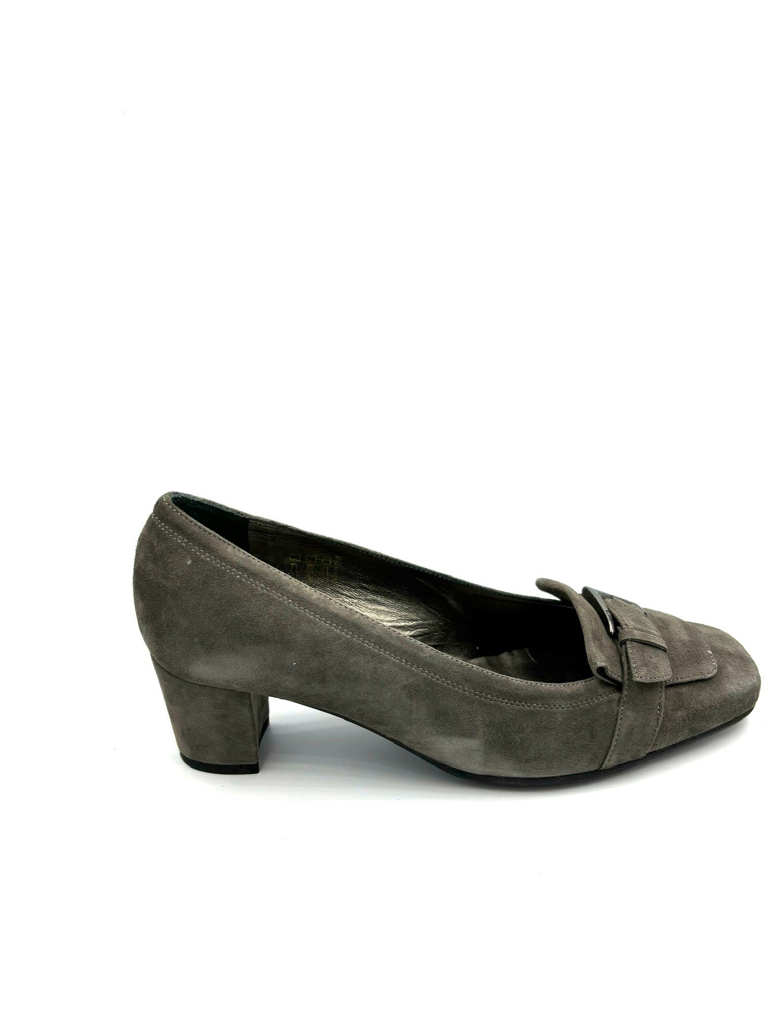 decoltè in pelle scamosciata color fumo. Prodotto italiano e suola in gomma, tacco 6cm.