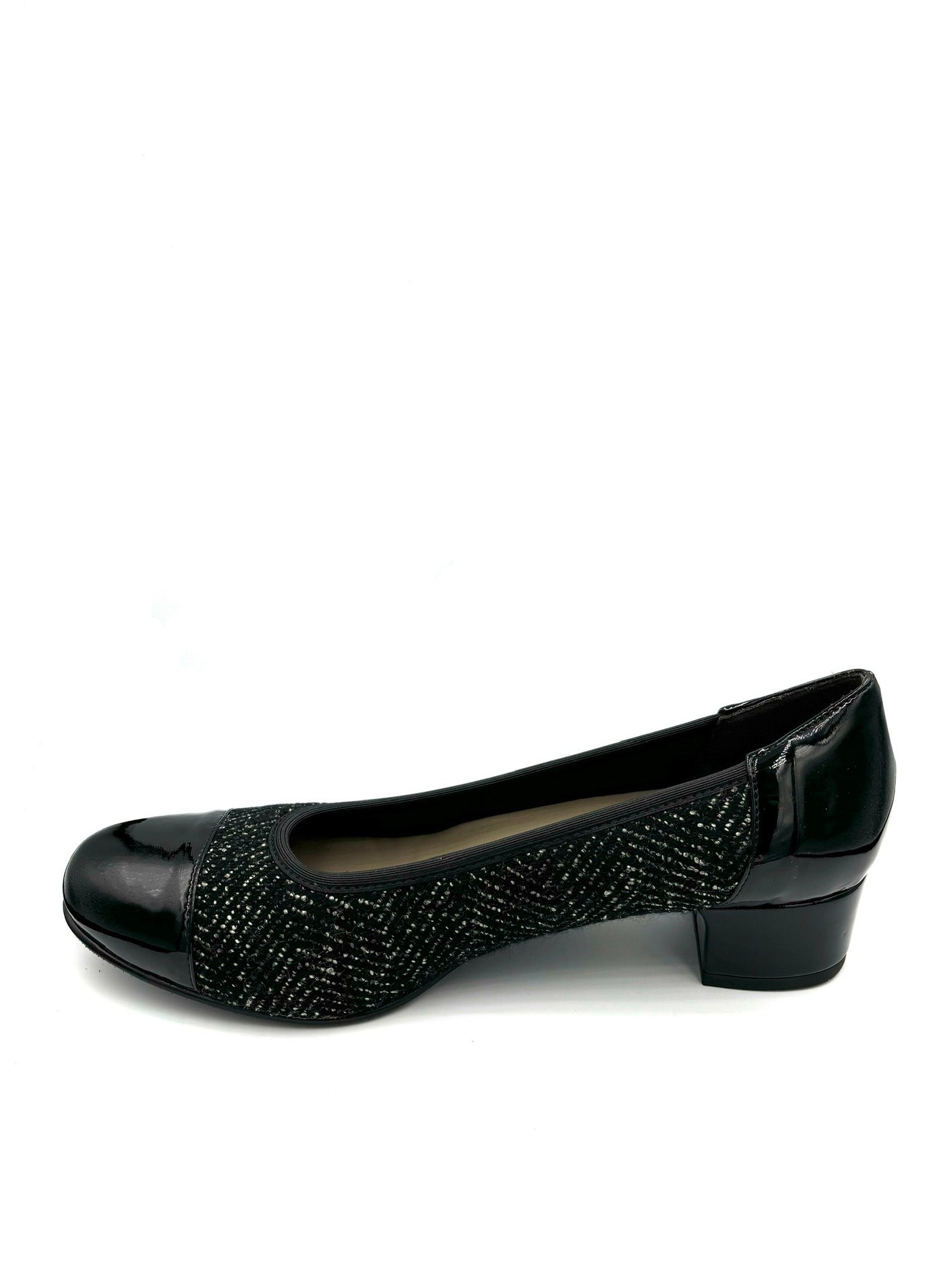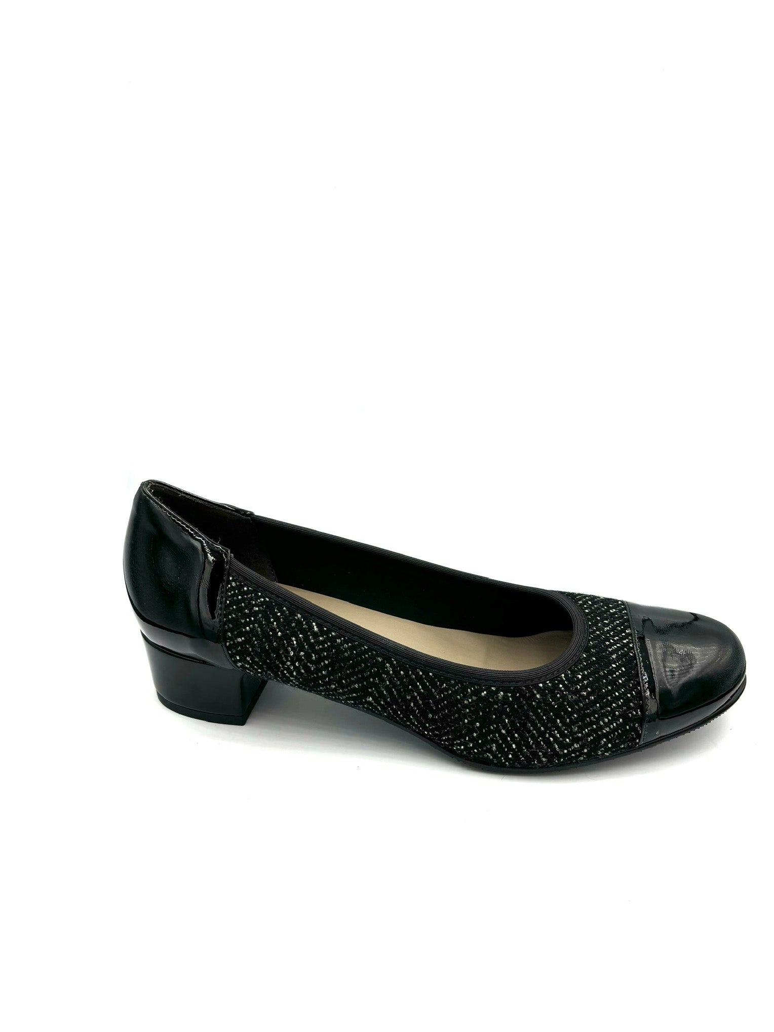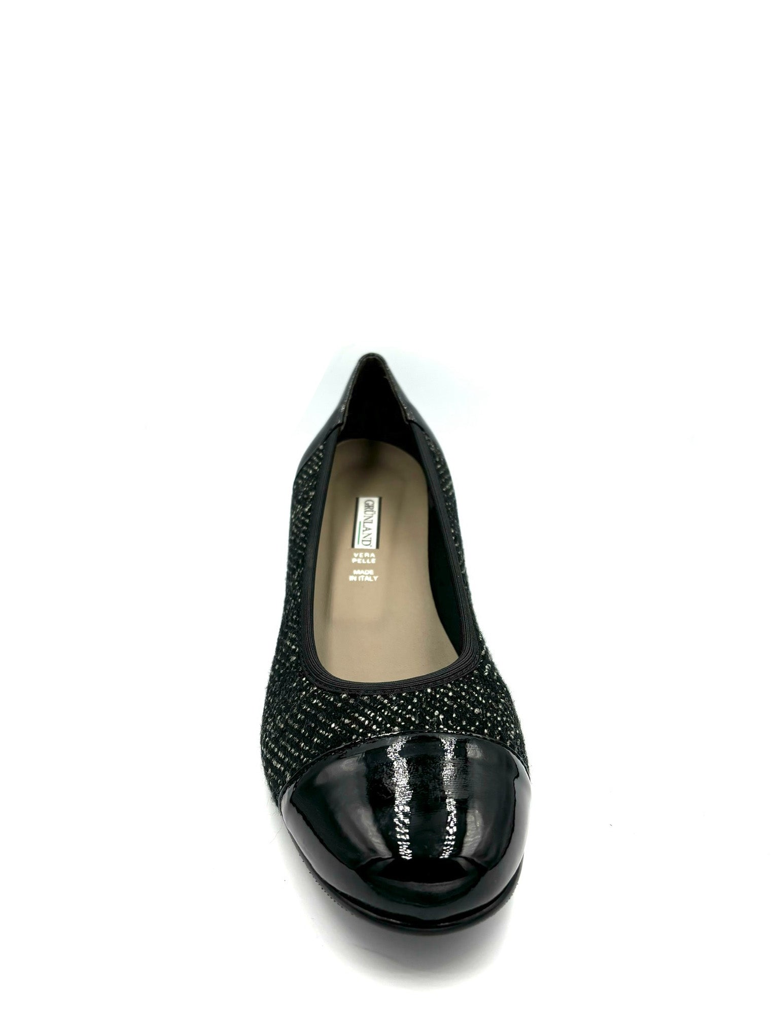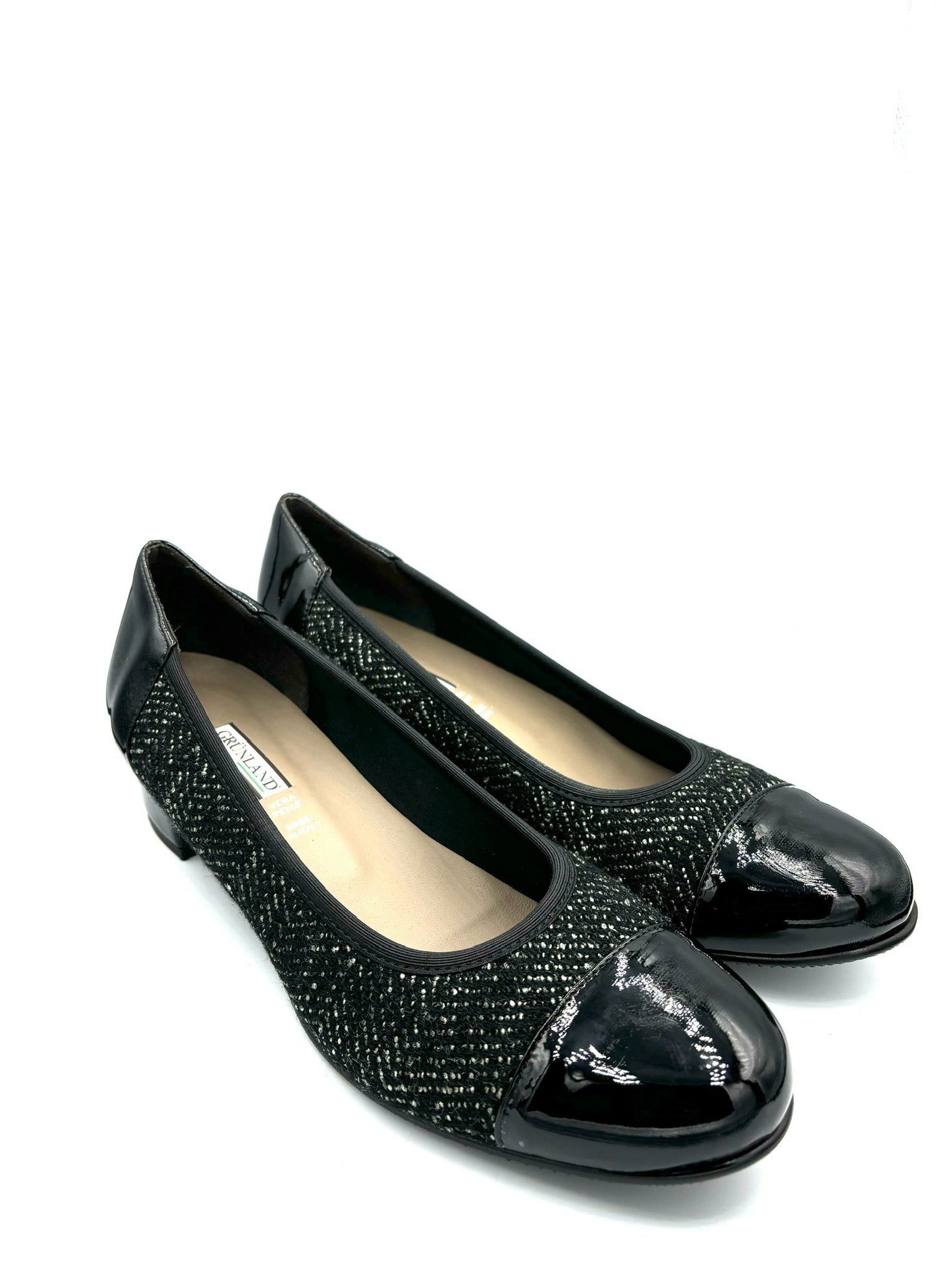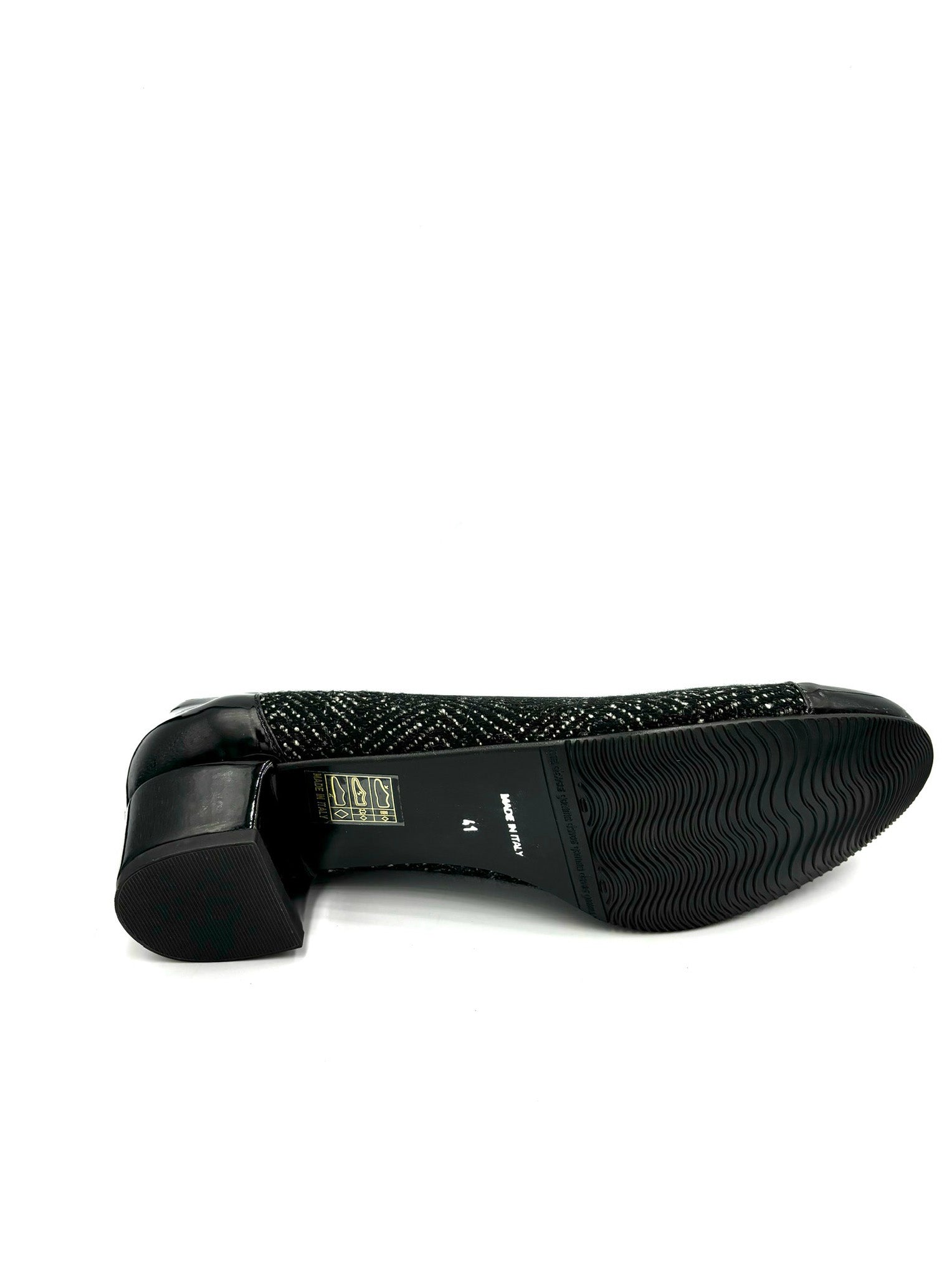 decoltè in pelle e punta laccata. Prodotto italiano e suola in gomma, tacco 4cm.