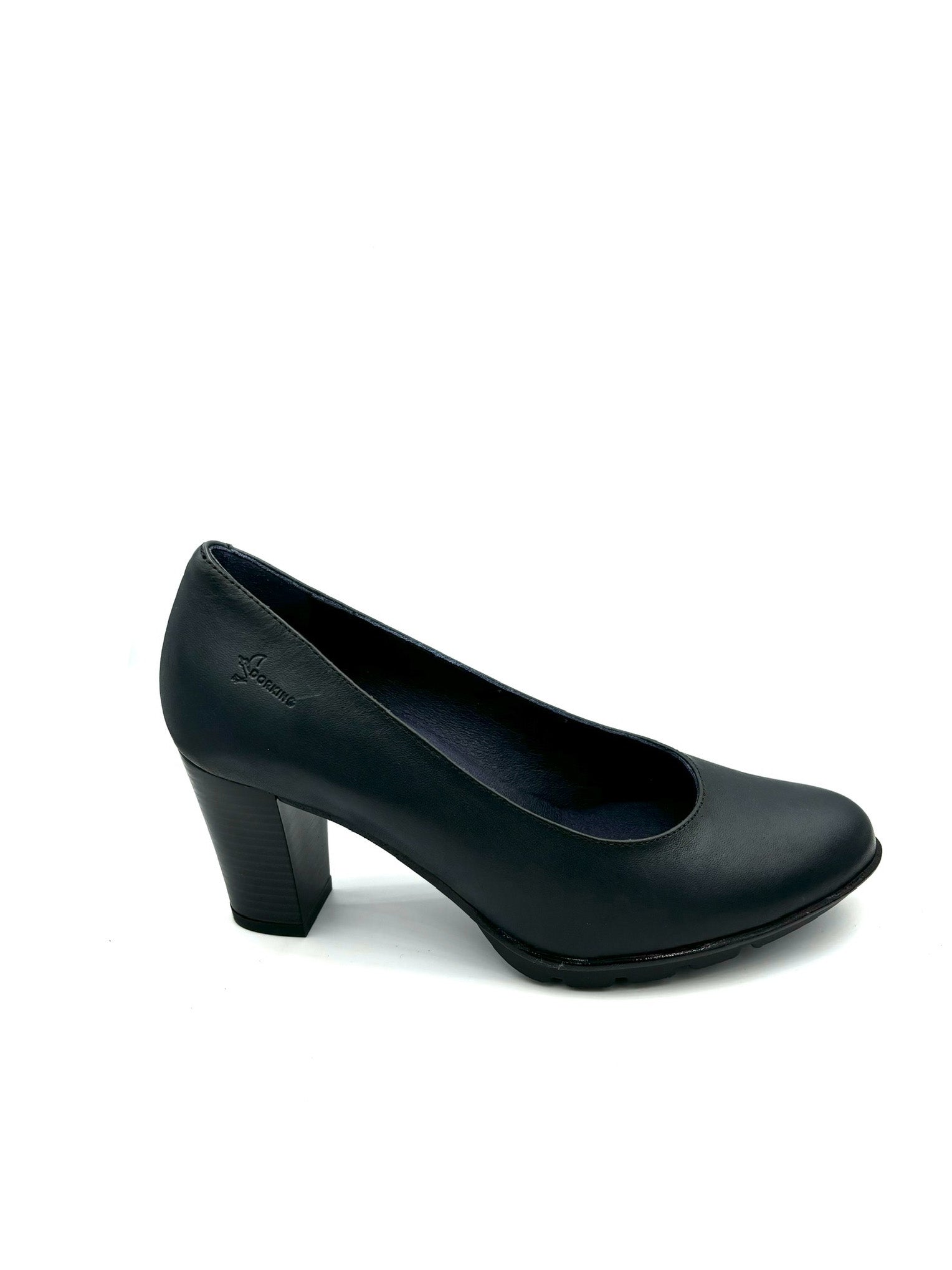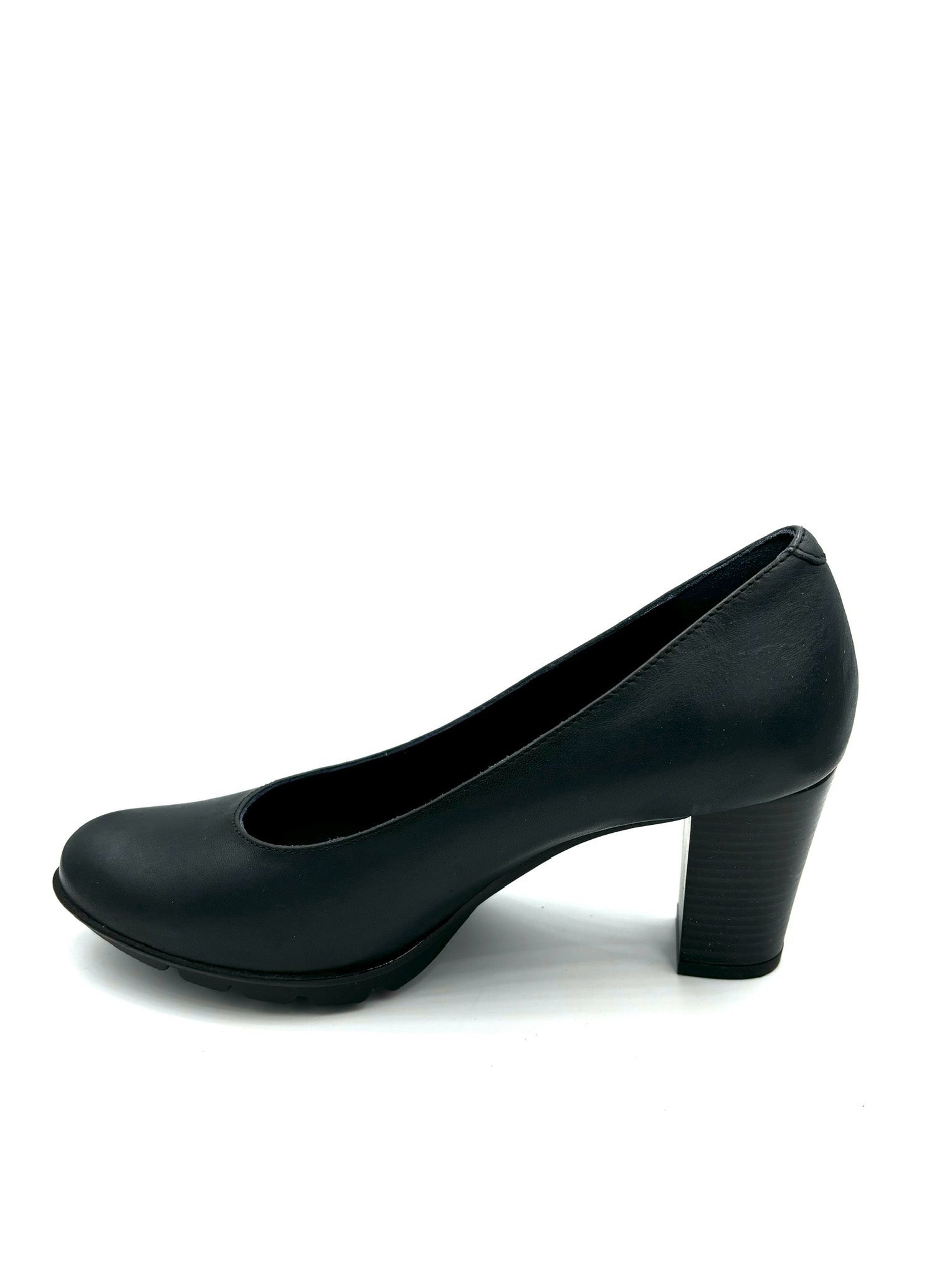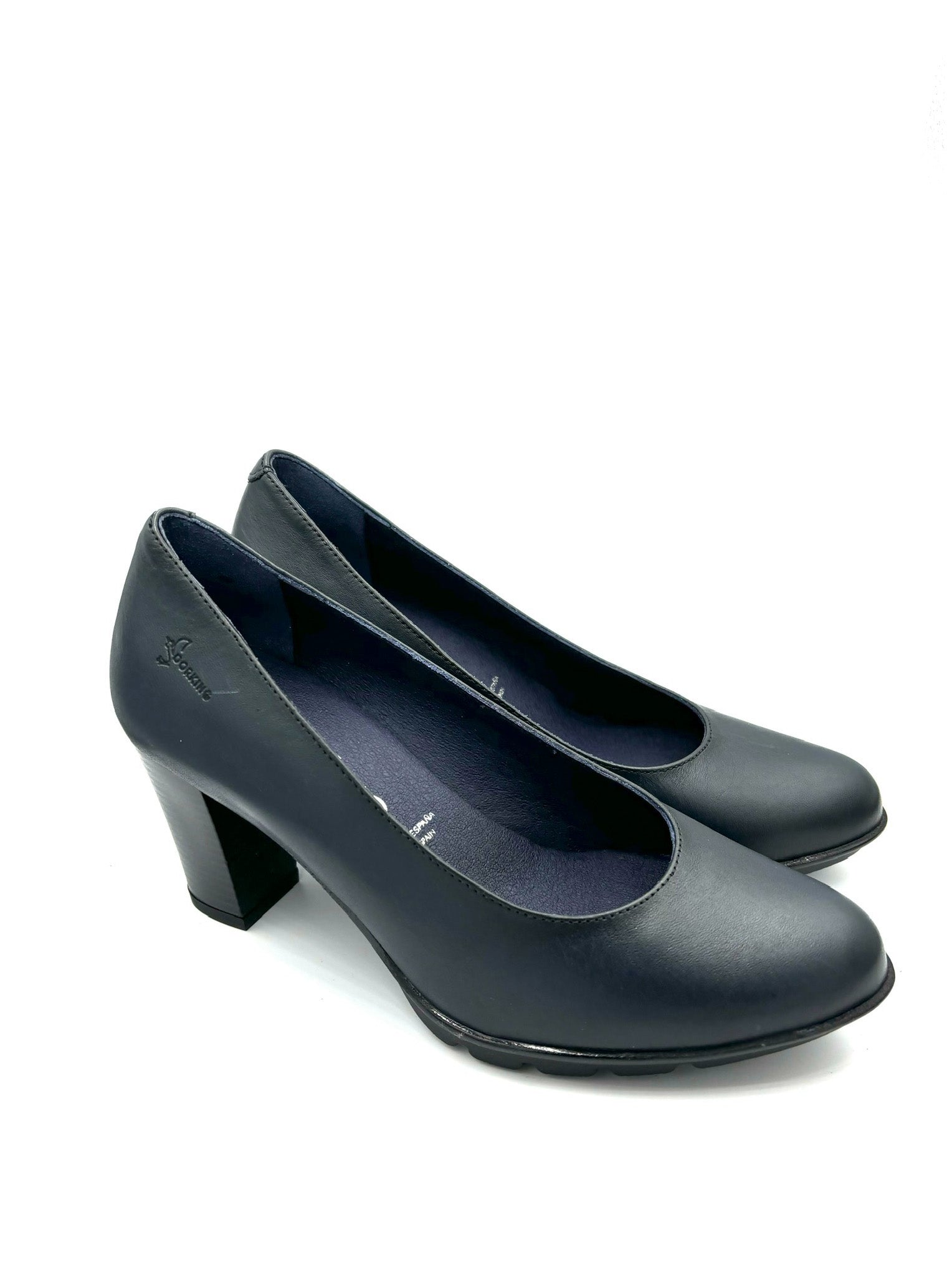 decoltè made in Spain. Tomaia blu in pelle e foderata in tessuto, suola in gomma anti rumore e tacco 7cm. Memory foam interno che rende confortevole la scarpa!