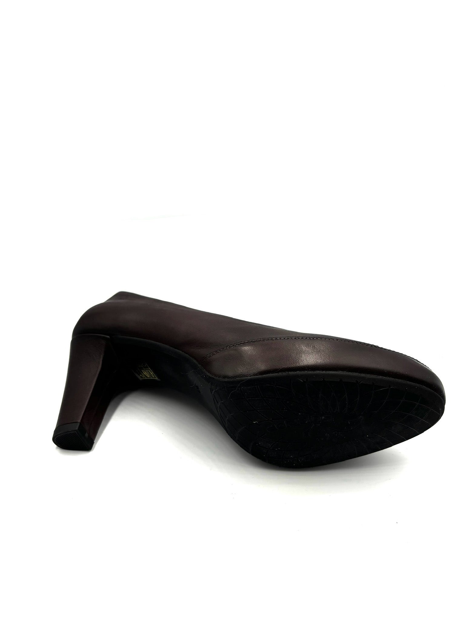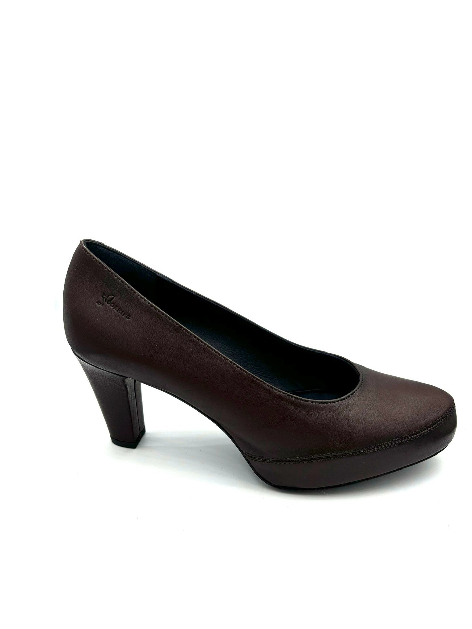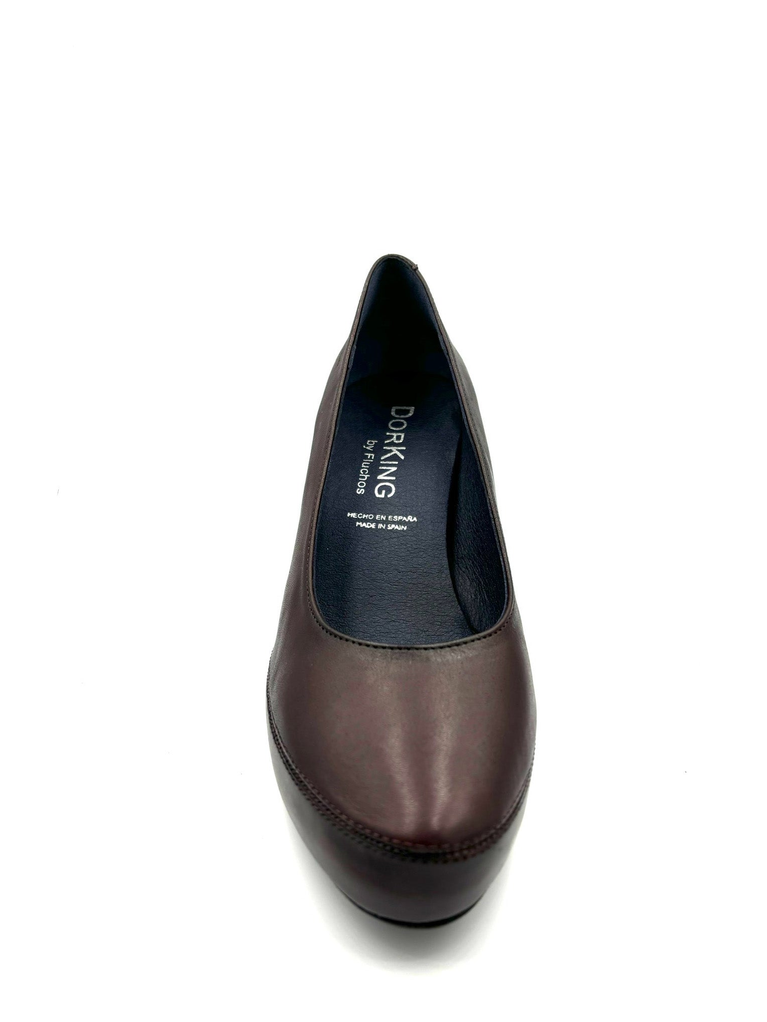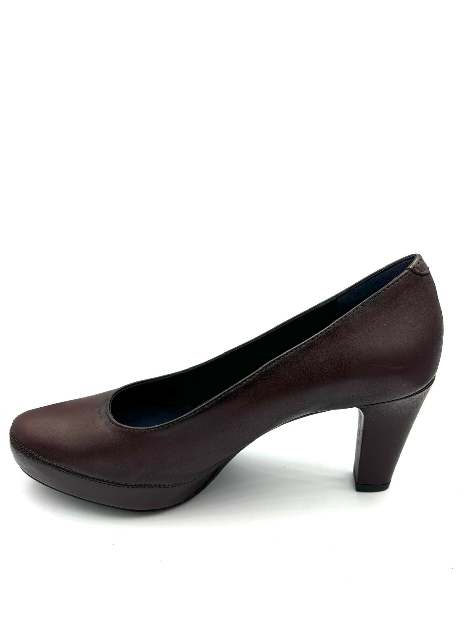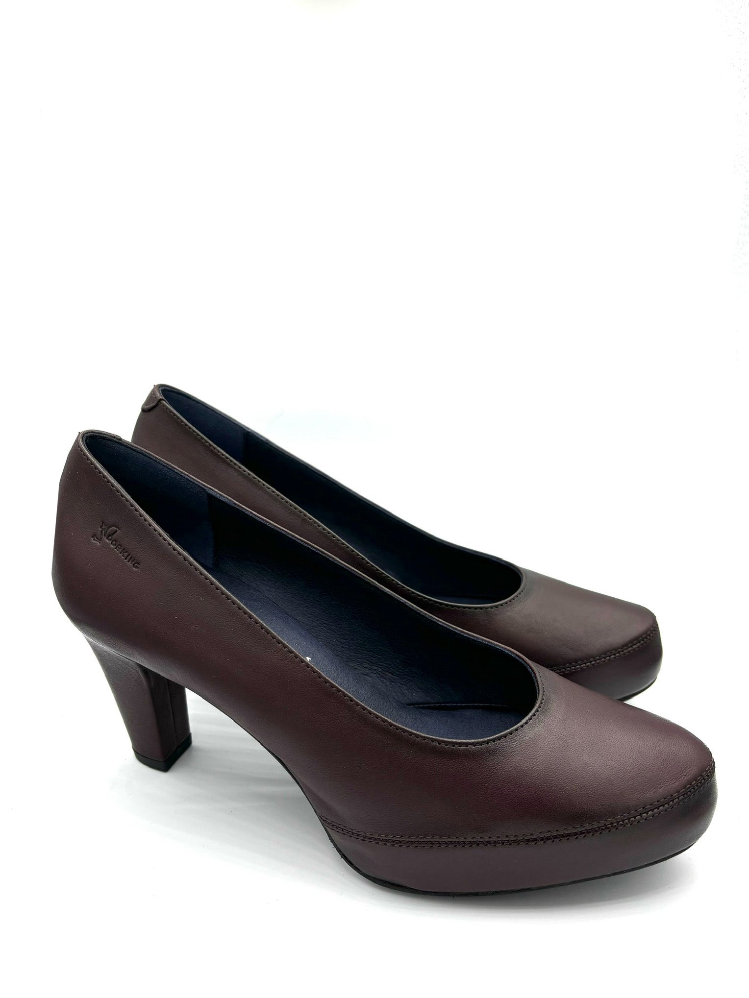 decoltè made in Spain. Tomaia bordeaux in pelle e foderata in tessuto, suola in gomma anti rumore e tacco 8cm e plateau di 3cm. Memory foam interno che rende confortevole la scarpa!