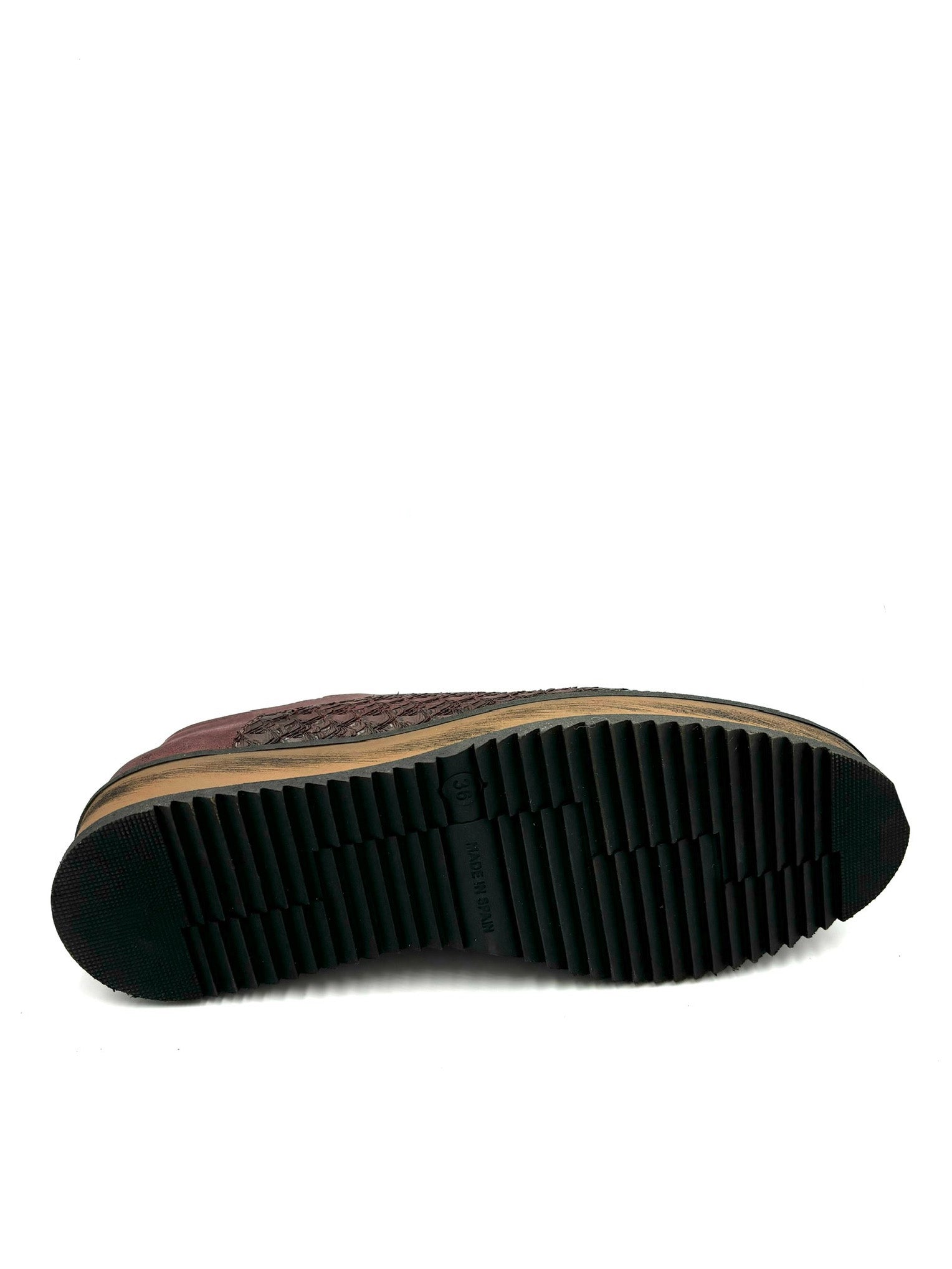 Scarpa prodotta in Spagna. Totalmente in pelle bordeaux laminato e foderata internamente. Suola ben isolata in gomma 3cm.