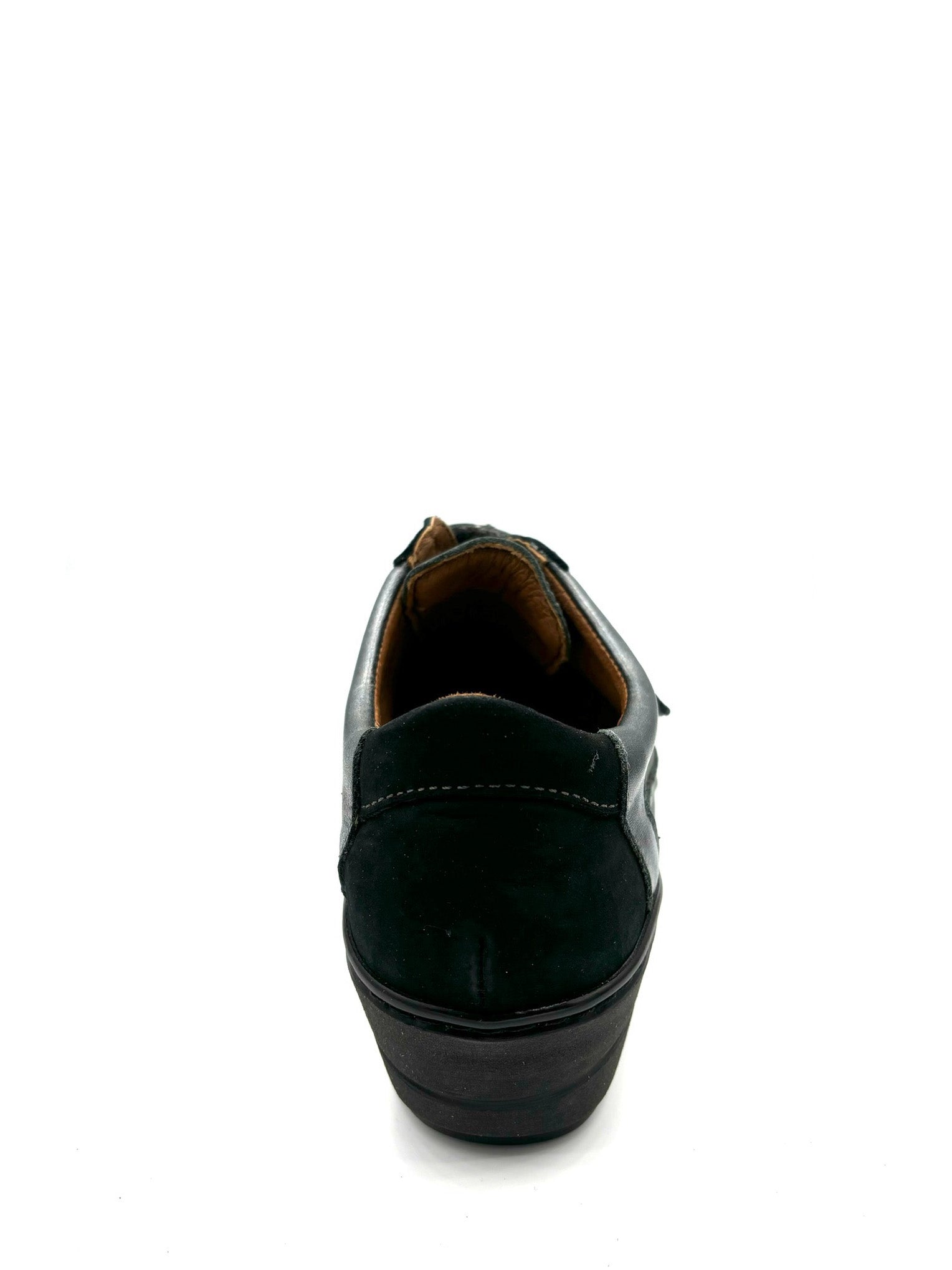 Scarpa in pelle con due strappi per agevolare la calzata. Suola in gomma 5cm. Suola in pelle estraibile.