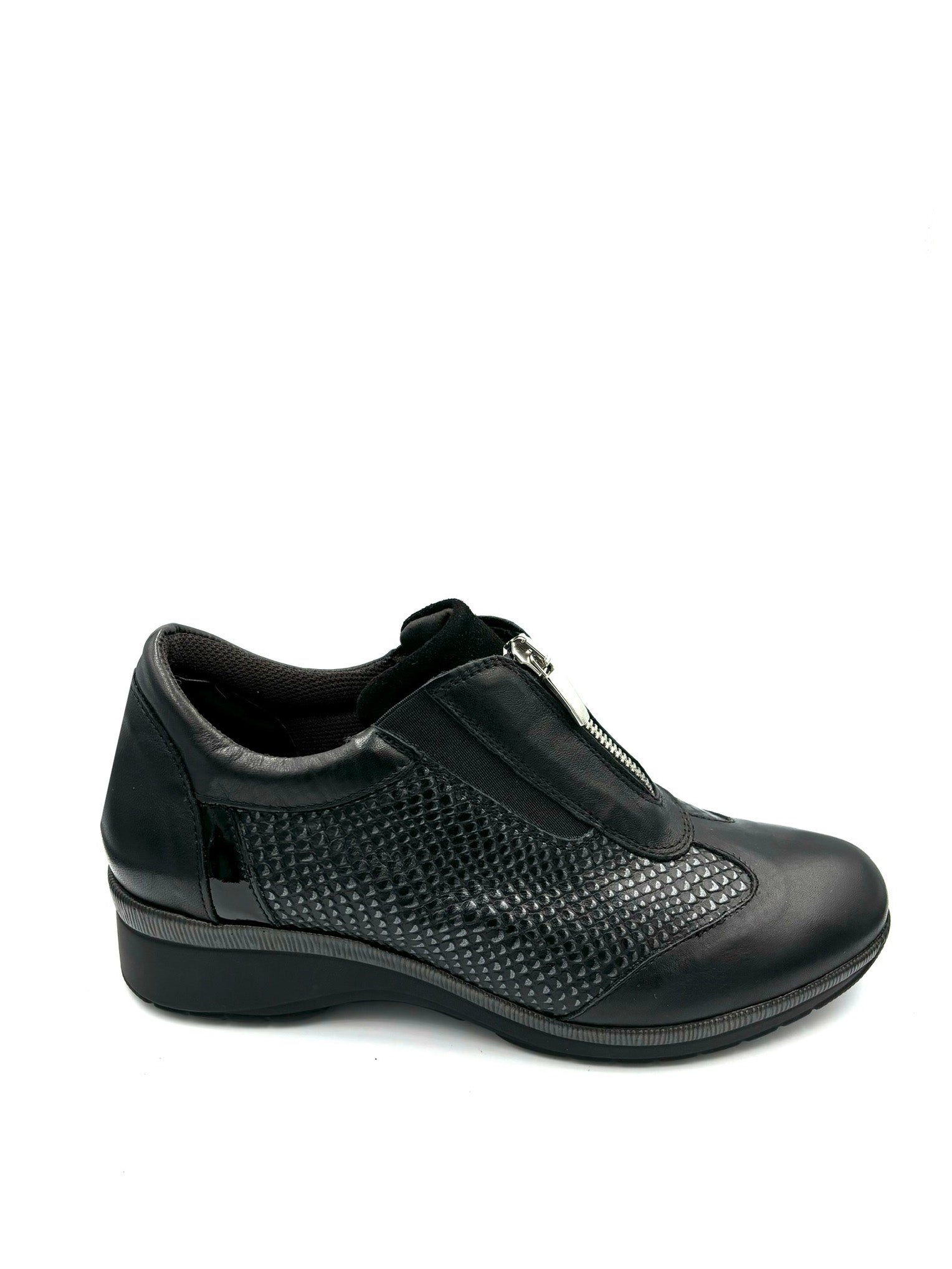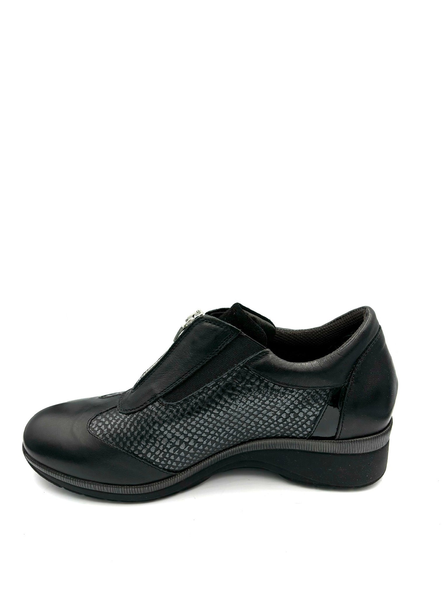 Scarpa con zip per agevolare la calzata. Suola 5cm in gomma isolata. Prodotto italiano totalmente in pelle, foderato internamente. Sottopiede estraibile.