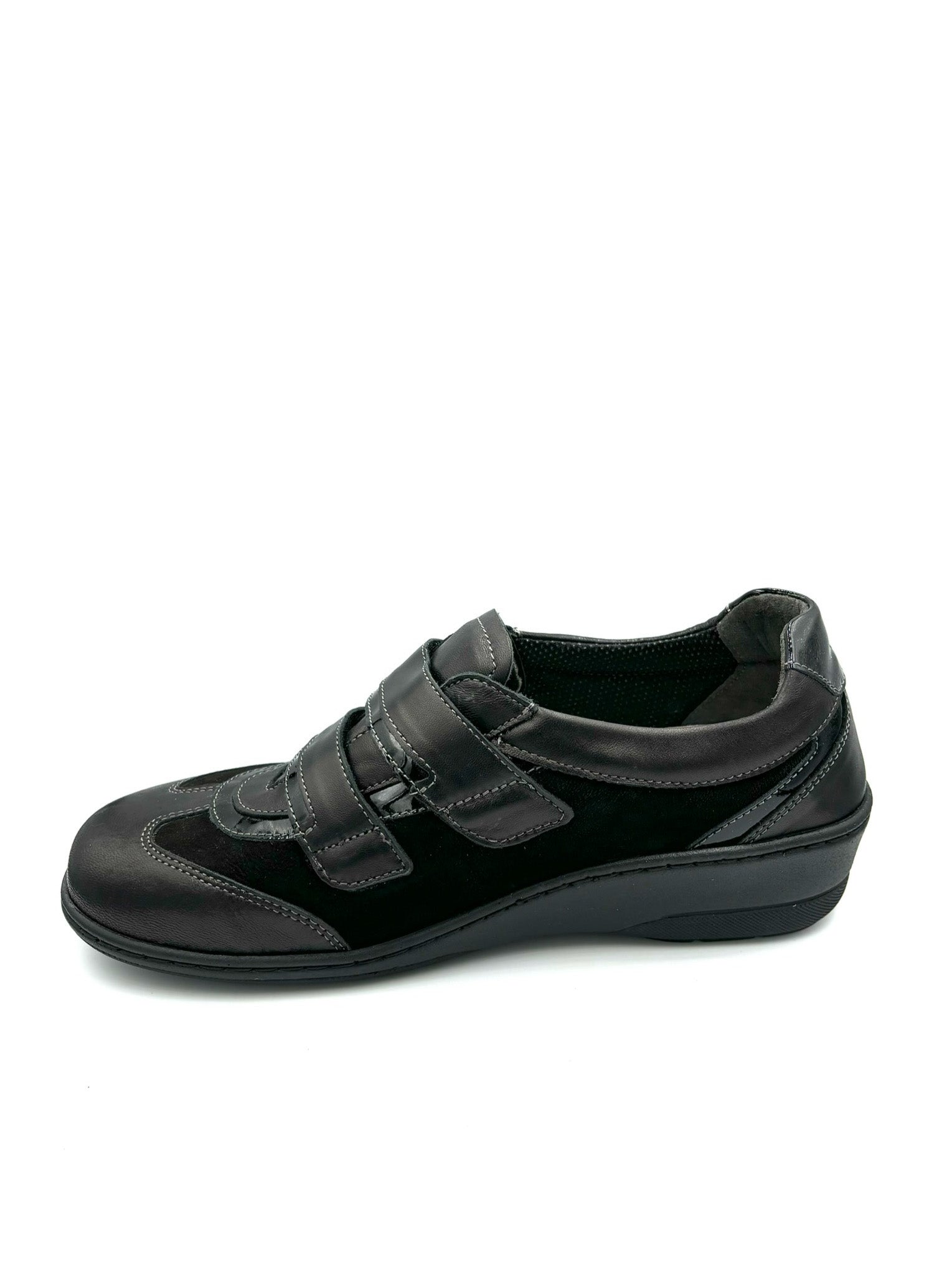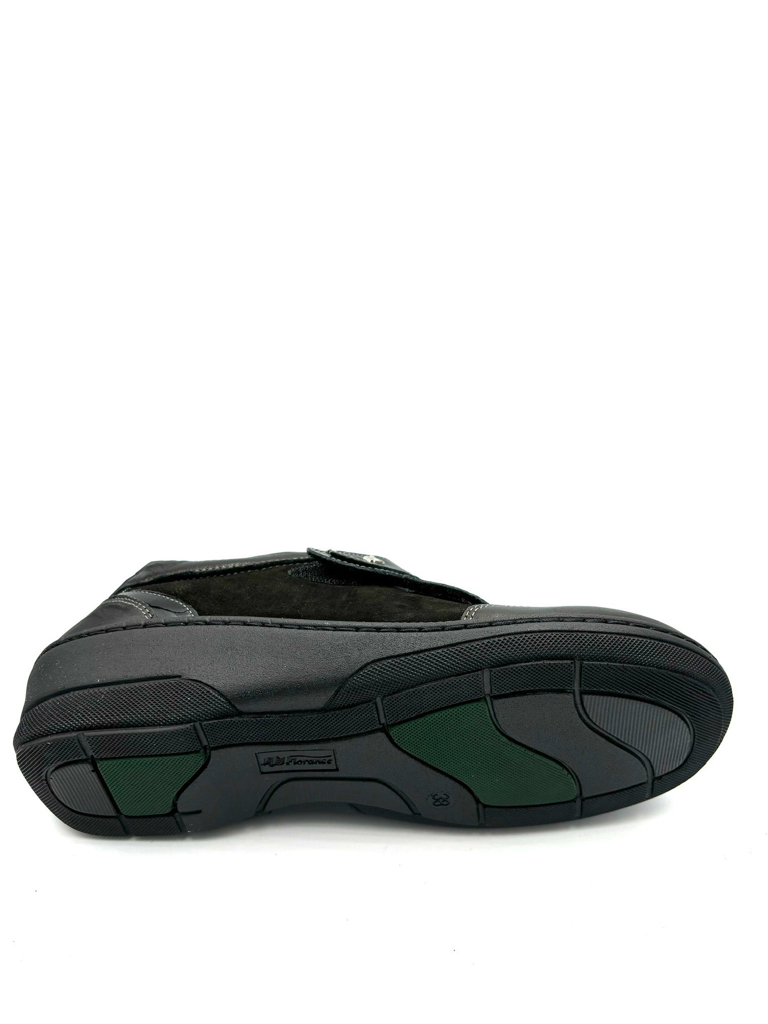 Scarpa totalmente in pelle, prodotto in Italia. Soletta estraibile e suola in gomma isolata. Scarpa con strappi comoda da calzare.