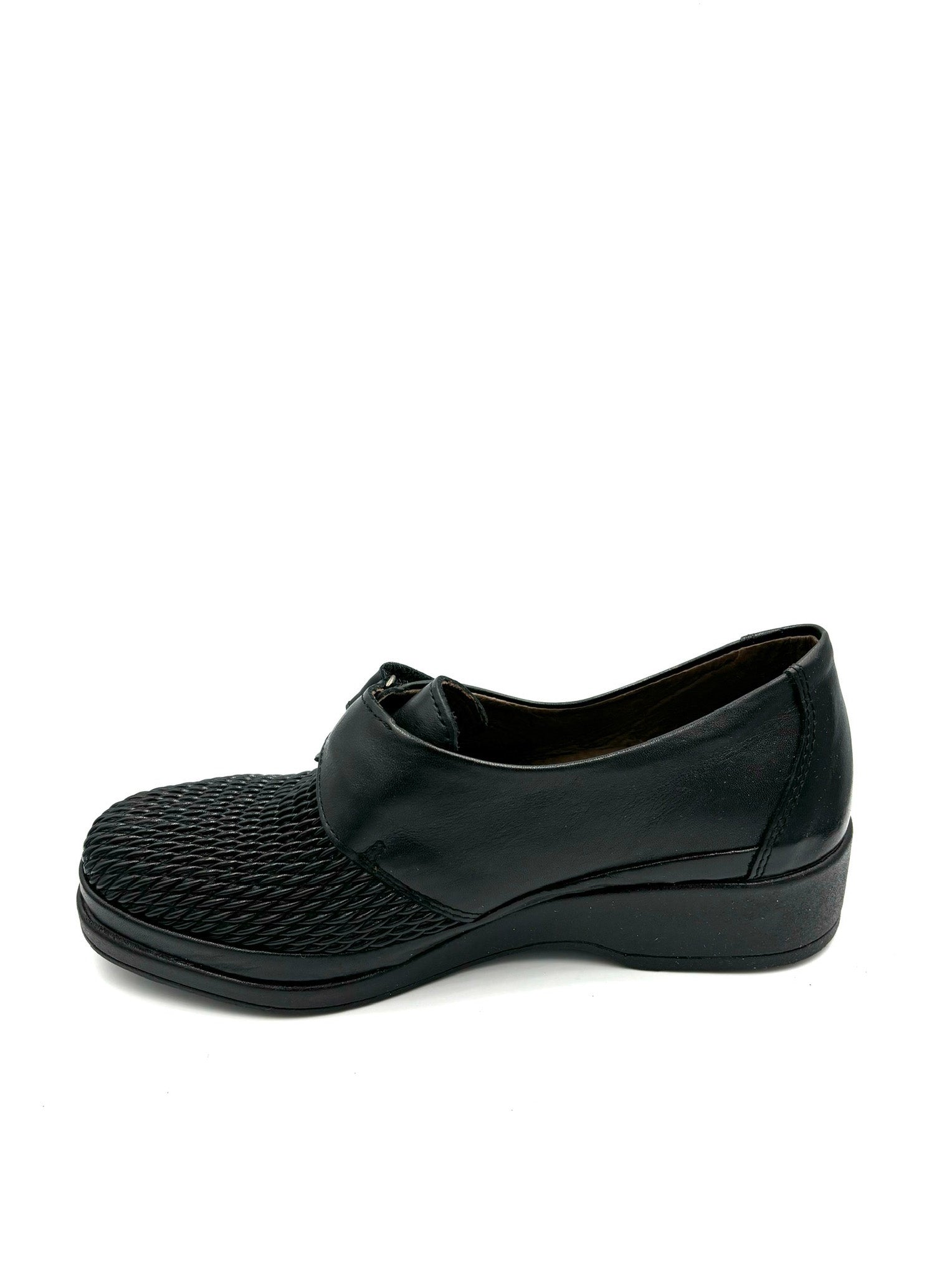 Scarpa che segue bene il piede. Totalmente in pelle e tessuto, con strappo pratico. Suola in gomma ben isolata. Prodotto italiano.