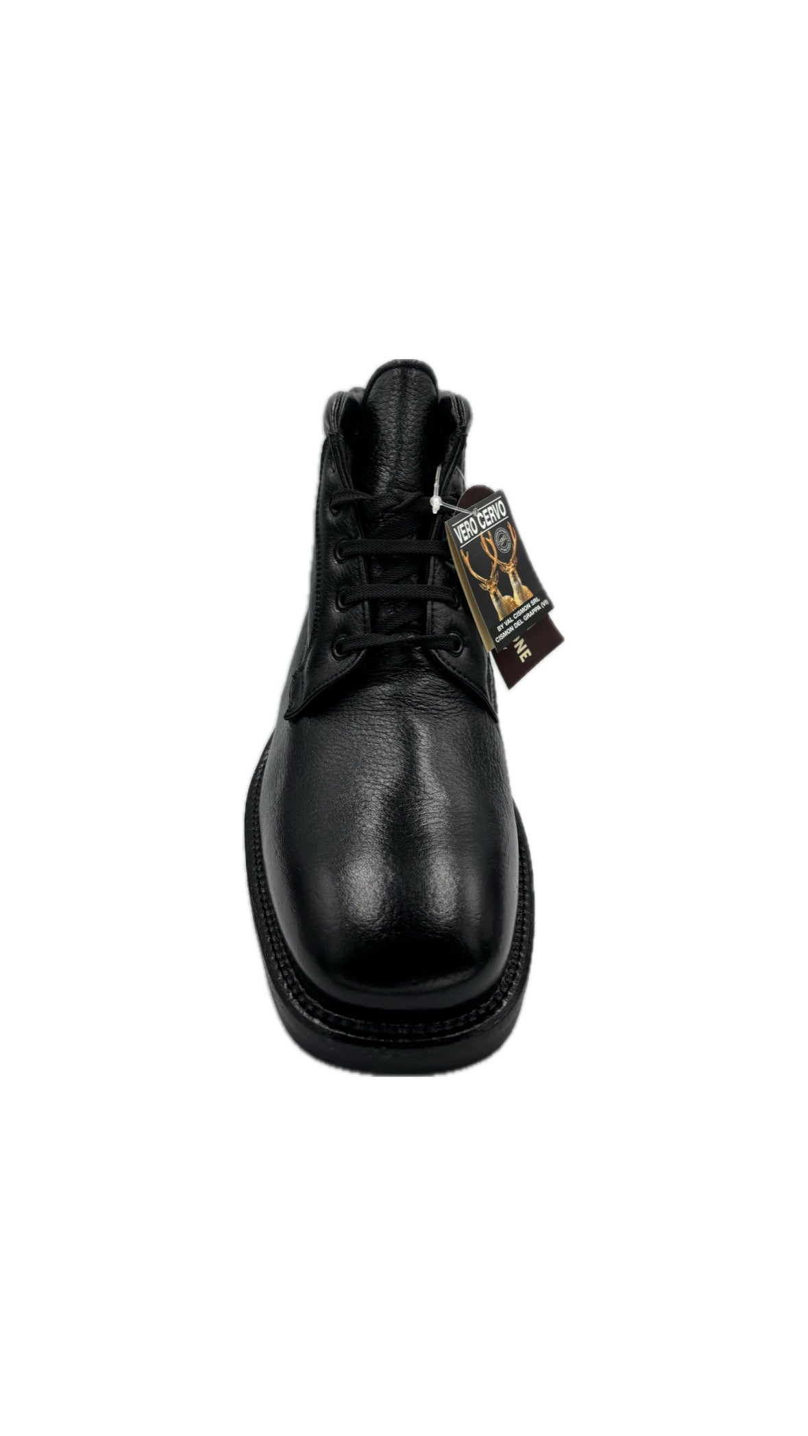 Scarpa stringata Mid in pelle vera di cervo.all'interno è foderata in pelo di vero montone. La scarpa è stata prodotta interamente in Italia e artigianalmente. Suola in gomma antiscivolo con punta squadrata di tendenza.