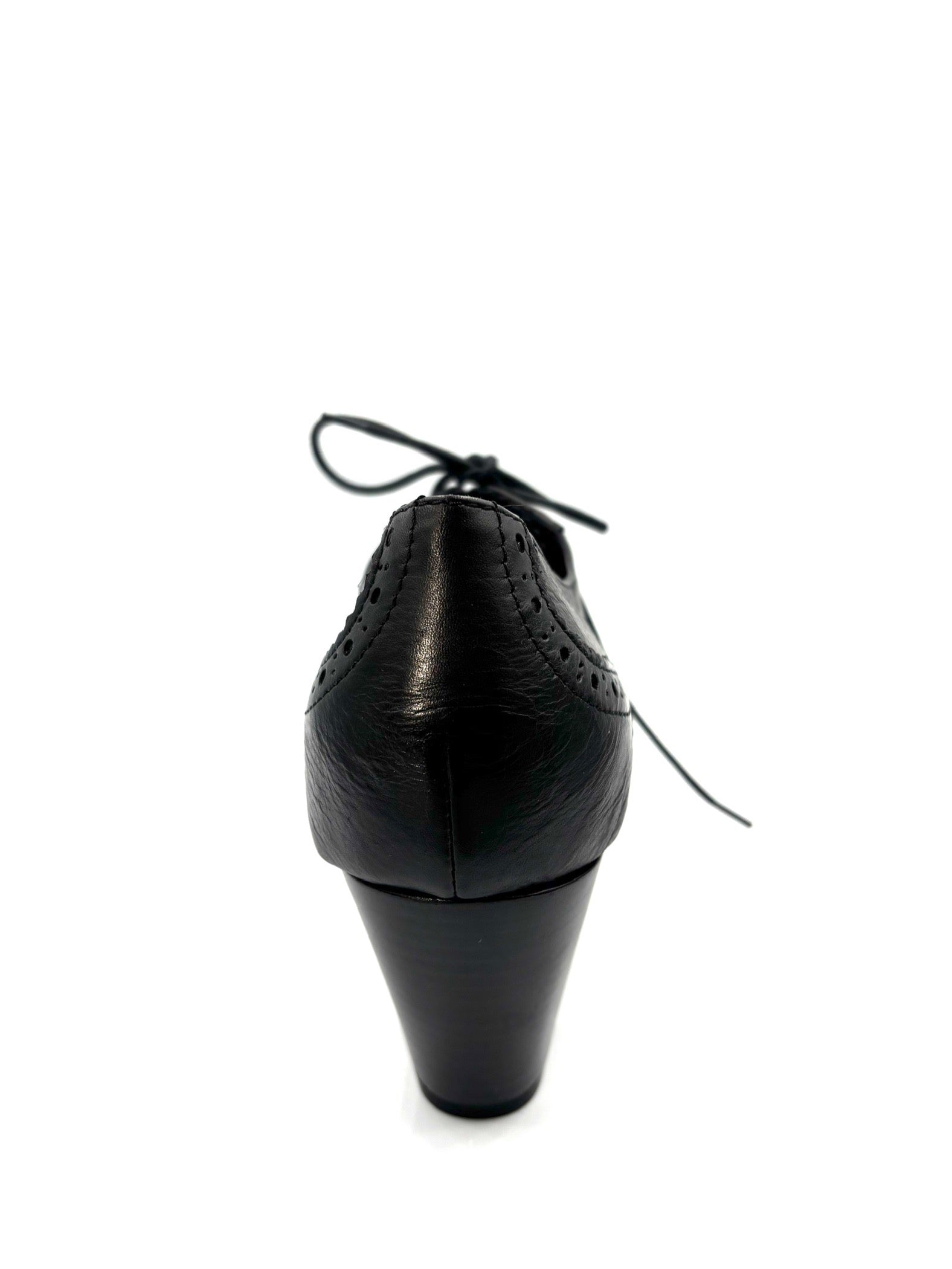 Prodotto completamente in pelle, tacco in gomma 7 cm. Stile con fantasia a coda di rondine con laccio.