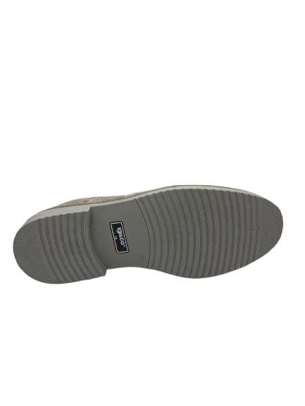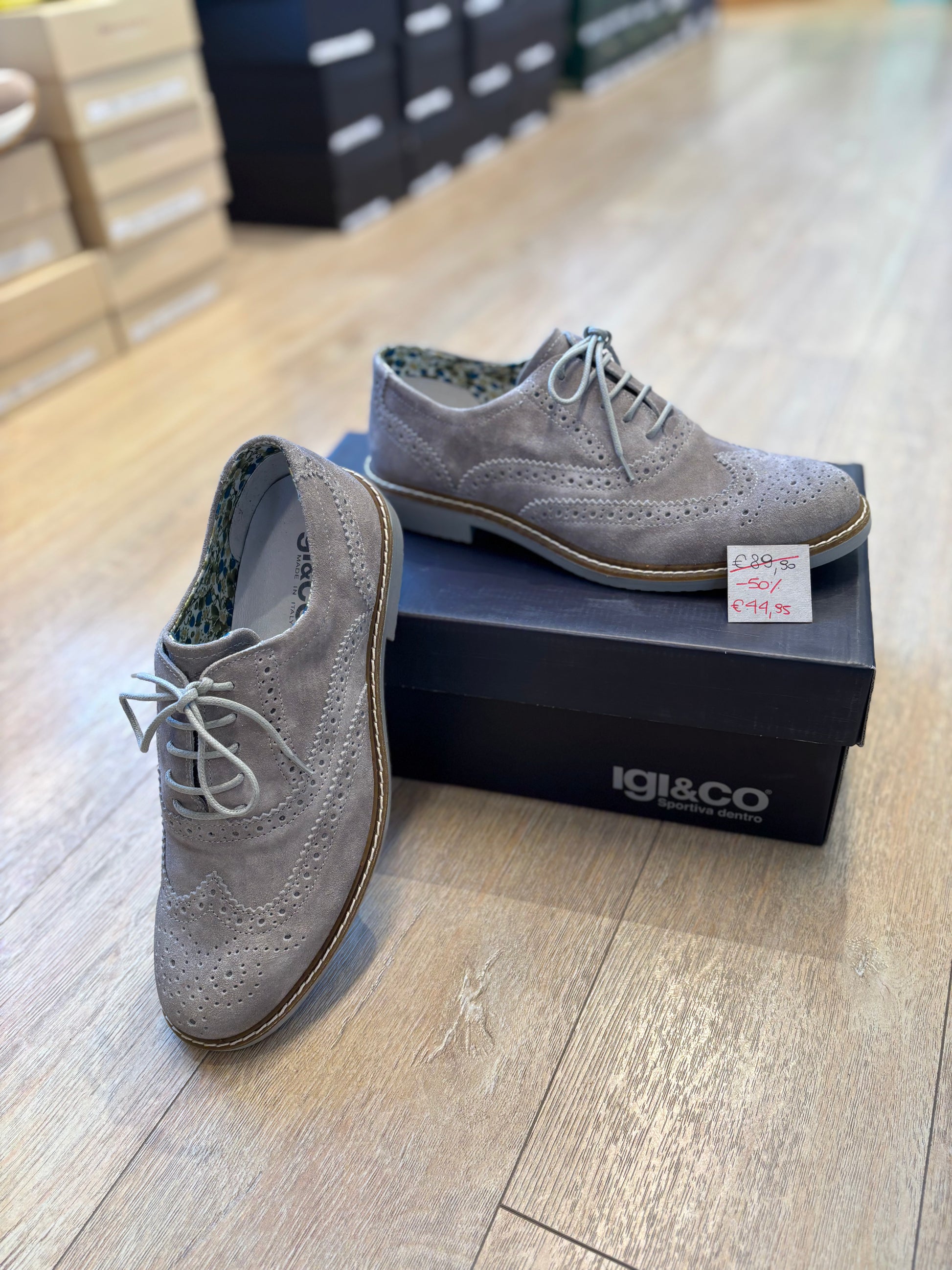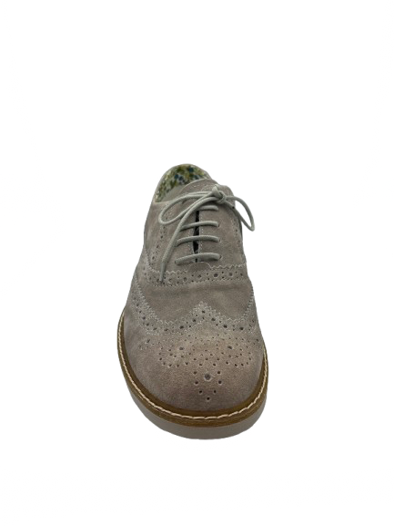 Scarpa prodotta in Italia e in pelle. In pelle scamosciata grigia con coda di rondine. Suola in gomma bella ammortizzata e confortevole.