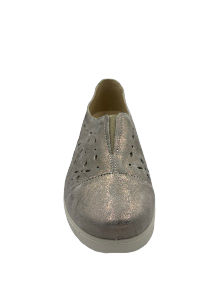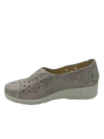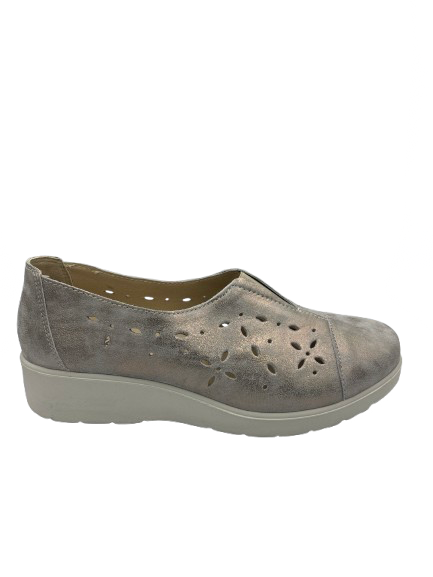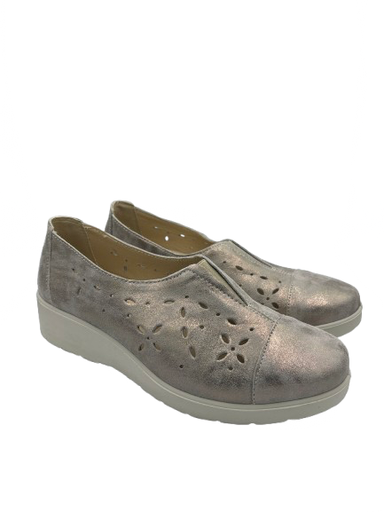 Parola d'ordine: comodità. Mocassino completamente in pelle e prodotto italiano con memory form. Dalla fantasia bucherellata molto estiva e traspirante per chi soffre molto il caldo. Suola in gomma antiscivolo con rialzo 4 cm plateau 2 cm.
